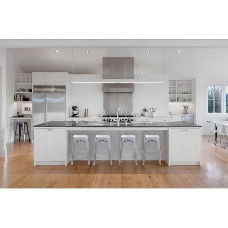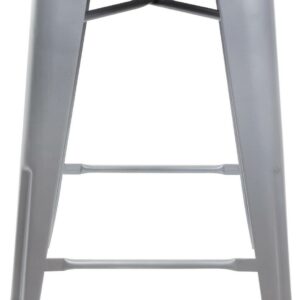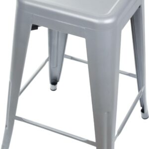 These Matte Gray 24″ Metal Stools are chic enough to be used in a kitchen and durable enough to be used in industrial shops, commercial settings, restaurants/bars, indoor/outdoor plus game rooms, dorms, bars, basement, dorm room, or loft. Ideal for small spaces, the bar stools easily and neatly stack together, making them easy to stash out of the way for storage. Made of an iron alloy, these stools are sturdy and light. Each stool weighs only 9.9 lbs., but is strong enough to support 300 lbs. Each metal stool has a brace under the seat that provides additional support and stability. Rubber feet keep the stools from sliding and scratching hardwood floors. The bar stools are painted gray with a scratch-resistant powder coat paint finish. Each stool stands 24 inches tall with a seat measuring 12 x 12 inches, and a base at the legs measuring 16 x 16 inches. Sold in 4 PACK