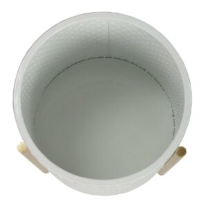 – Glossy round white planters with gold legs