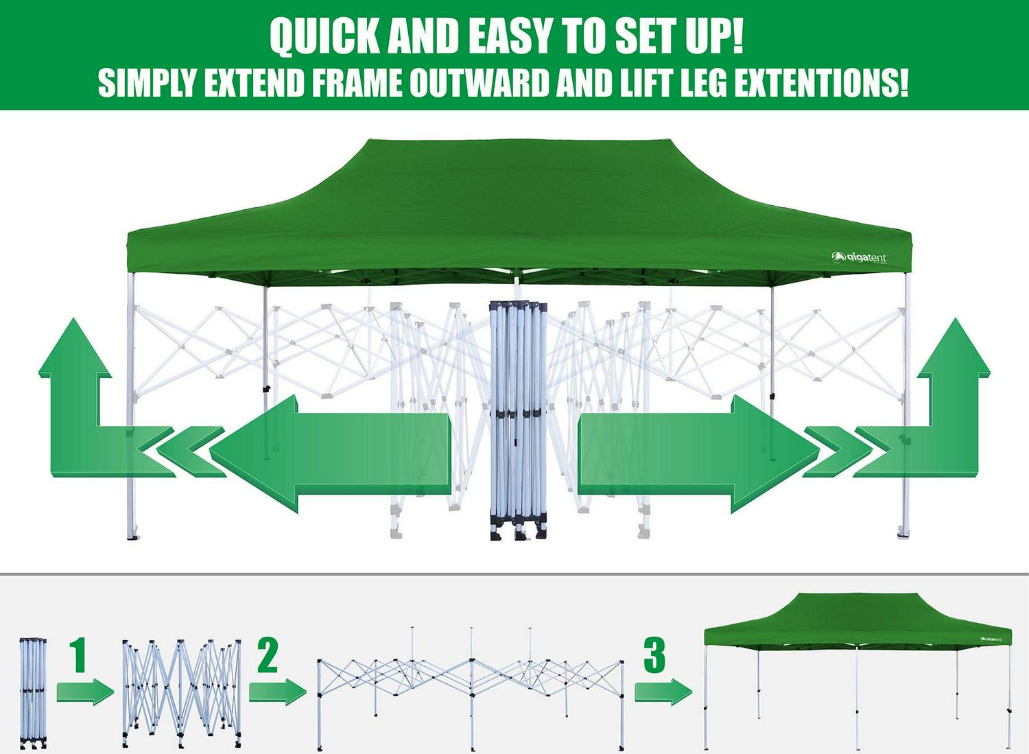 GIGATENT POP UP CANOPY 20 X 10 Powder Coated Steel Frame