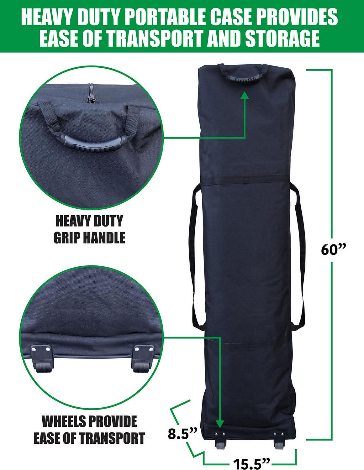 - Features: Heavy duty Oxford carry case with wheels