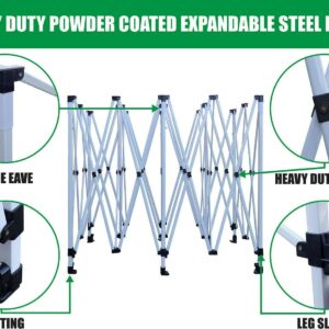 – Pole material: powder-coded steel accordion frame