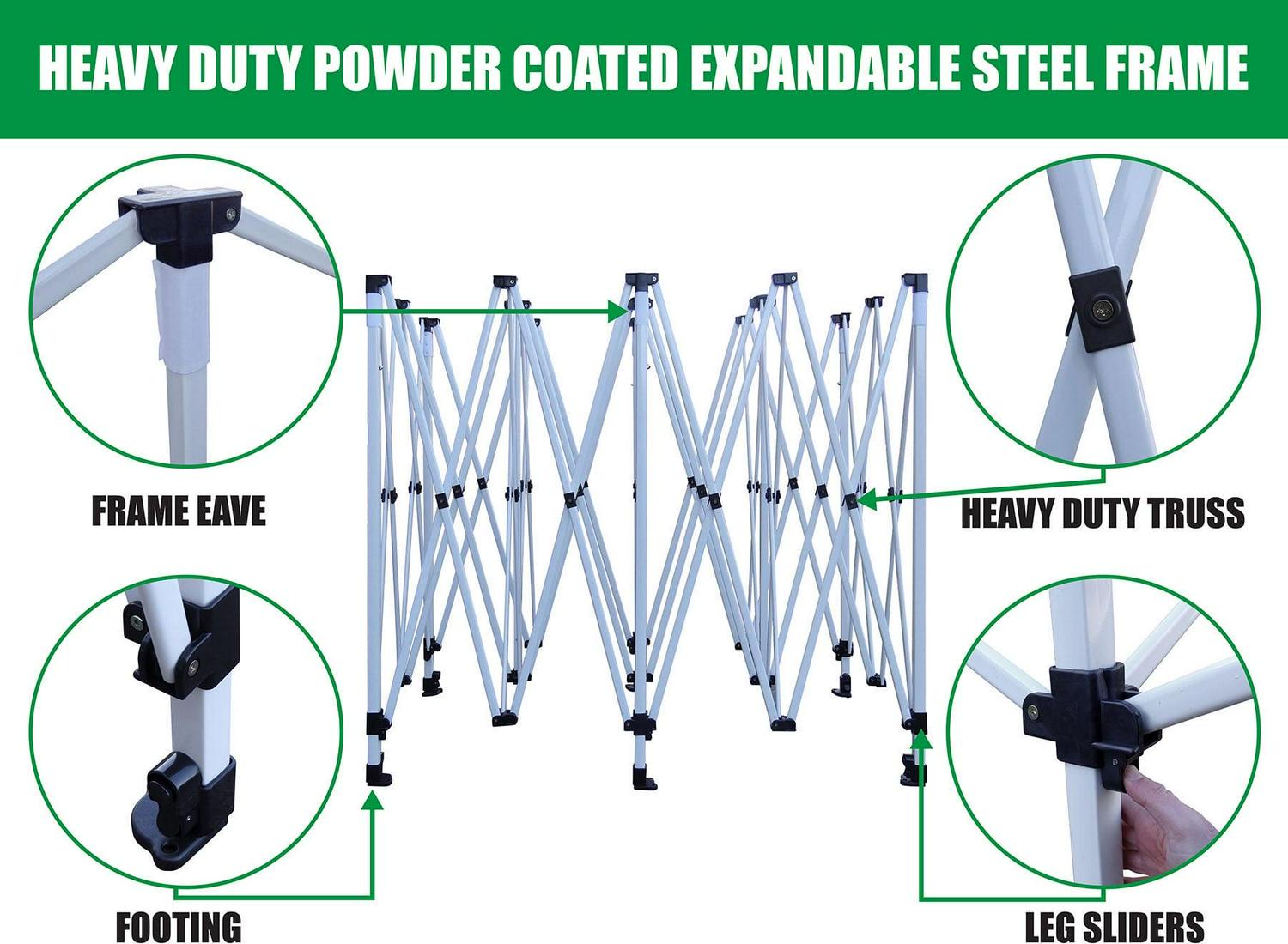 - Pole material: powder-coded steel accordion frame