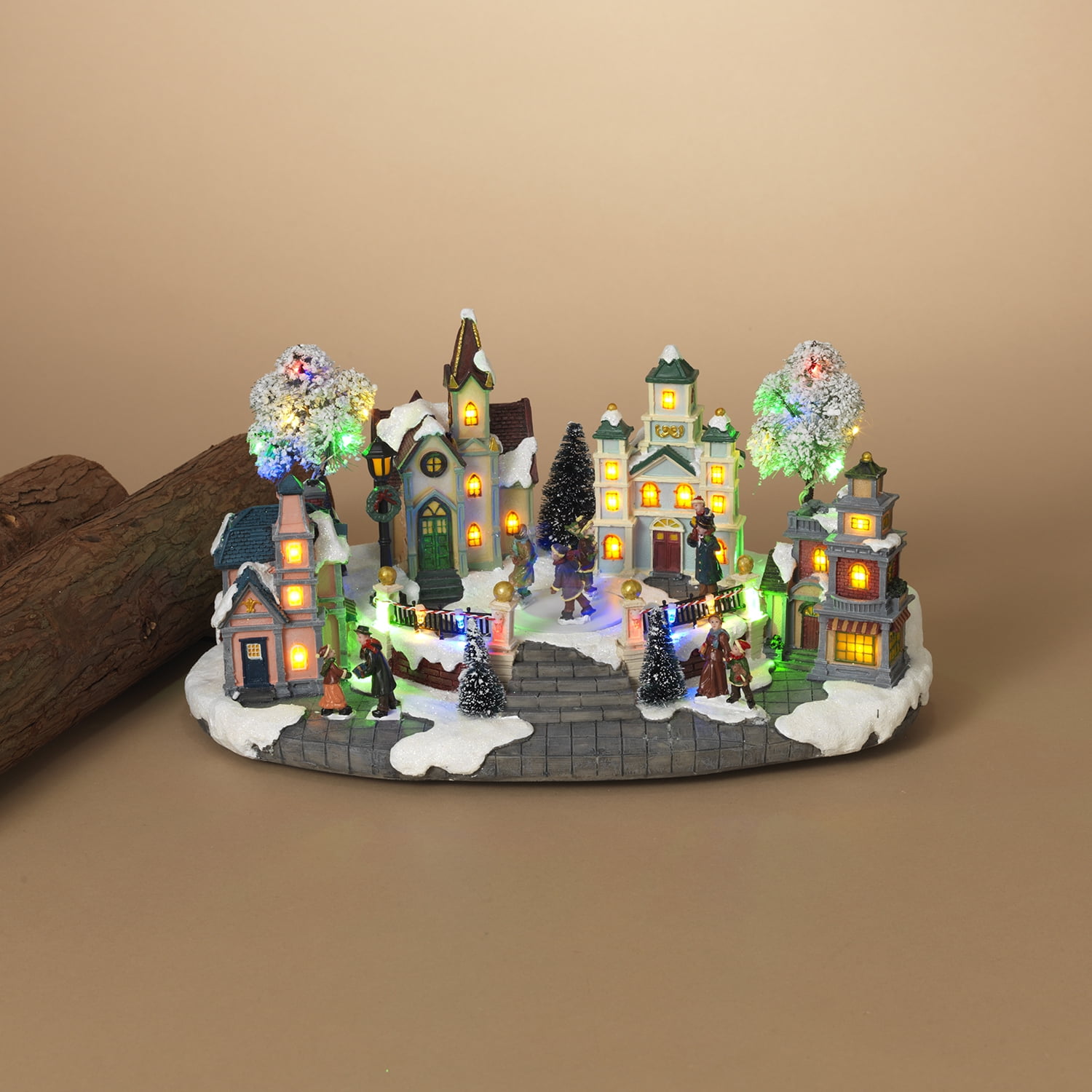 Every time you look at the beautiful scene, you will see a new detail Exquisitely detailed B/O lighted Christmas village scene CHRISTMAS 8 SONGS LIST 1.Jingle Bells 2.WE Wish You a Merry Christmas 3.Silent Night 4.Deck the Halls 5.Joy to the World 6.The First Noel 7.Hark! The Herald Angels Sing 8.Oh, Christmas Tree 1.8 meter (70.86-in long) black cord w/UL approved adapter included Measures 15.35-in L x 8.66-in W x 8.27-in H For indoor use only