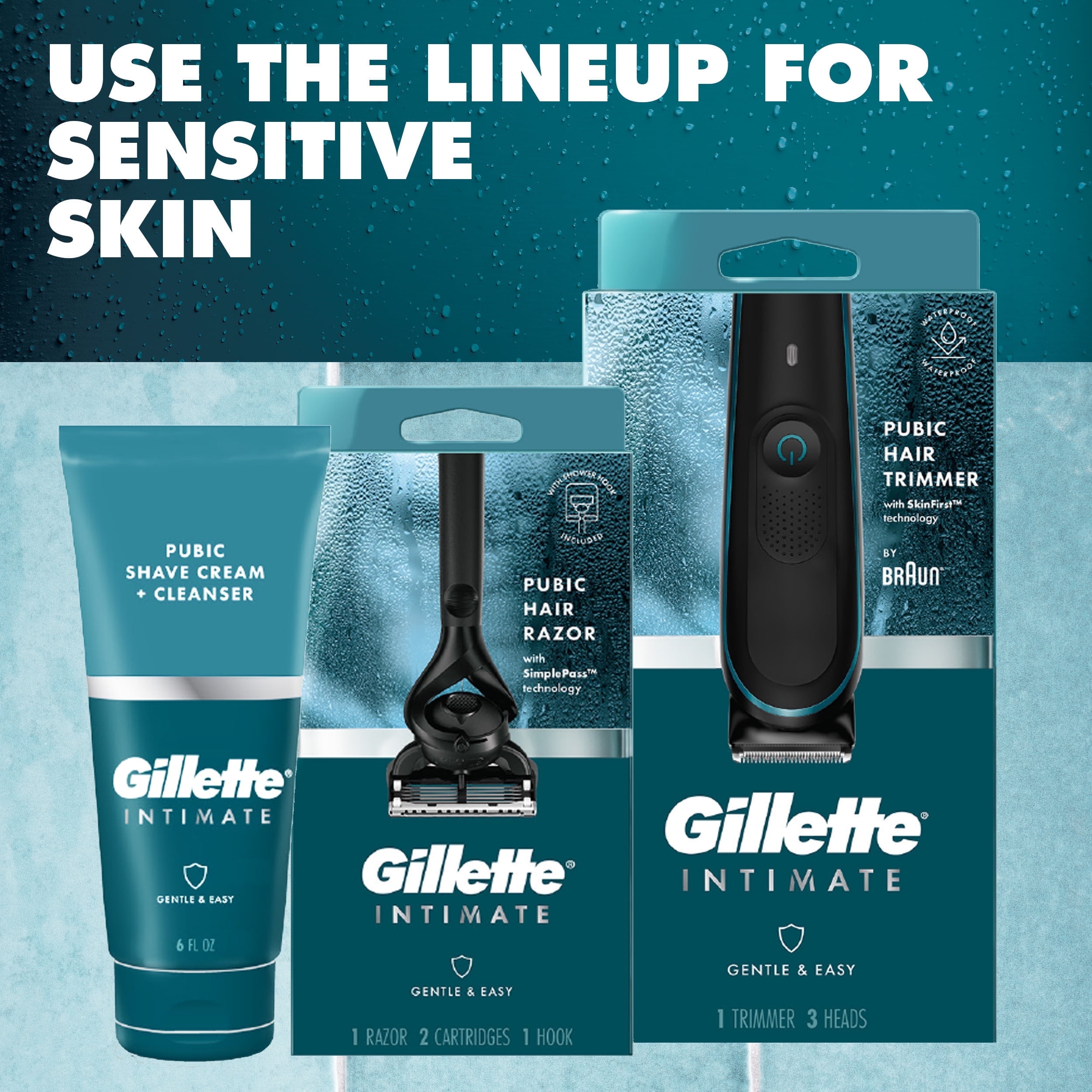 GILLETTE PUBIC TRIMMER: Engineered to be tough on hair, gentle on intimate skin DESIGNED TO MINIMIZE IRRITATION: With SKIN FIRST Technology. Closely spaced blades designed to minimize nicks, cuts and shaving irritation PROTECTIVE COMB: Designed for your comfort. Equipped with an attachable protective comb to minimize contact with the blade WATERPROOF AND CORDLESS: Get up to 100 minutes of cordless trimming with the powerful Li-Ion battery DERMATOLOGIST TESTED: Gentle on delicate pubic skin. Effortless and easy, elevate your hygiene care routine with Gillette Intimate Grooming. PART OF THE INTIMATE GROOMING ROUTINE: Use the entire Gillette Intimate grooming line for sensitive skin to help prepare, protect and maintain your pubic hair & skin