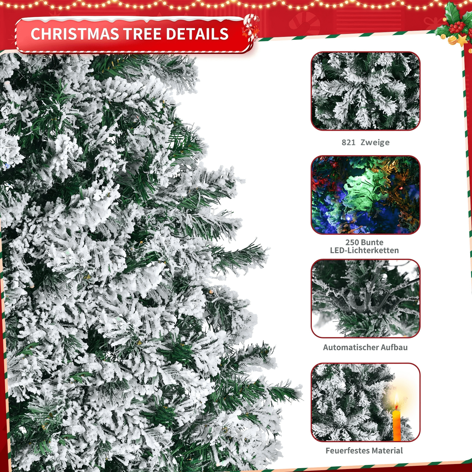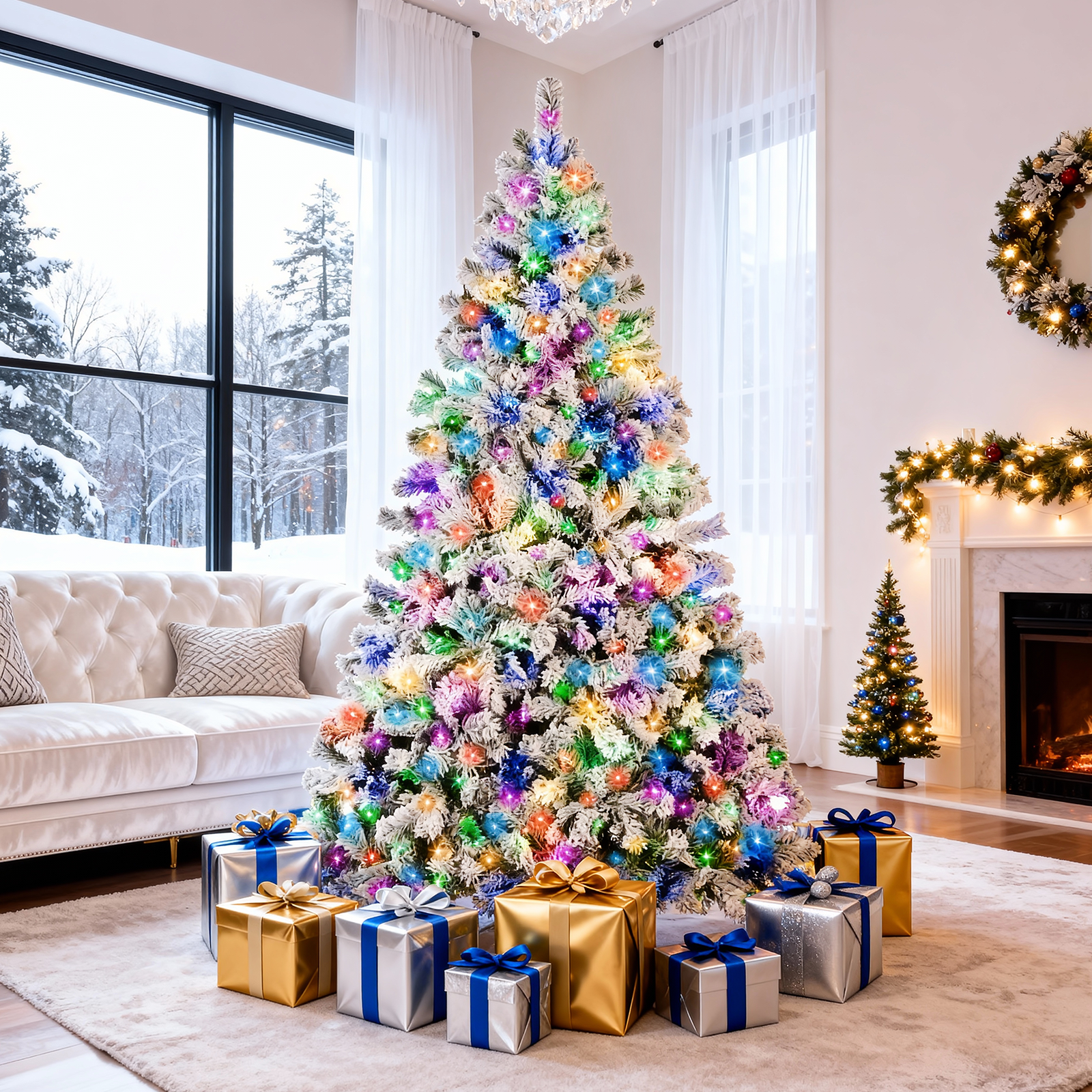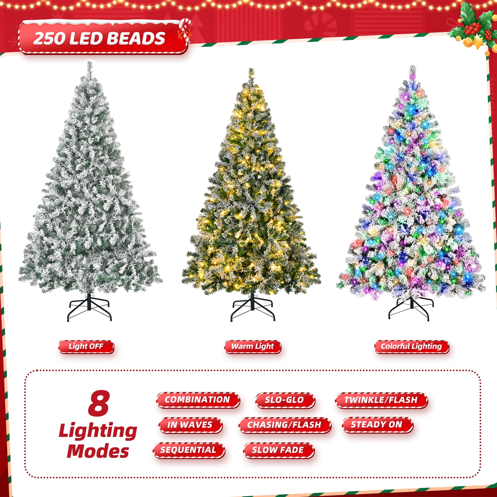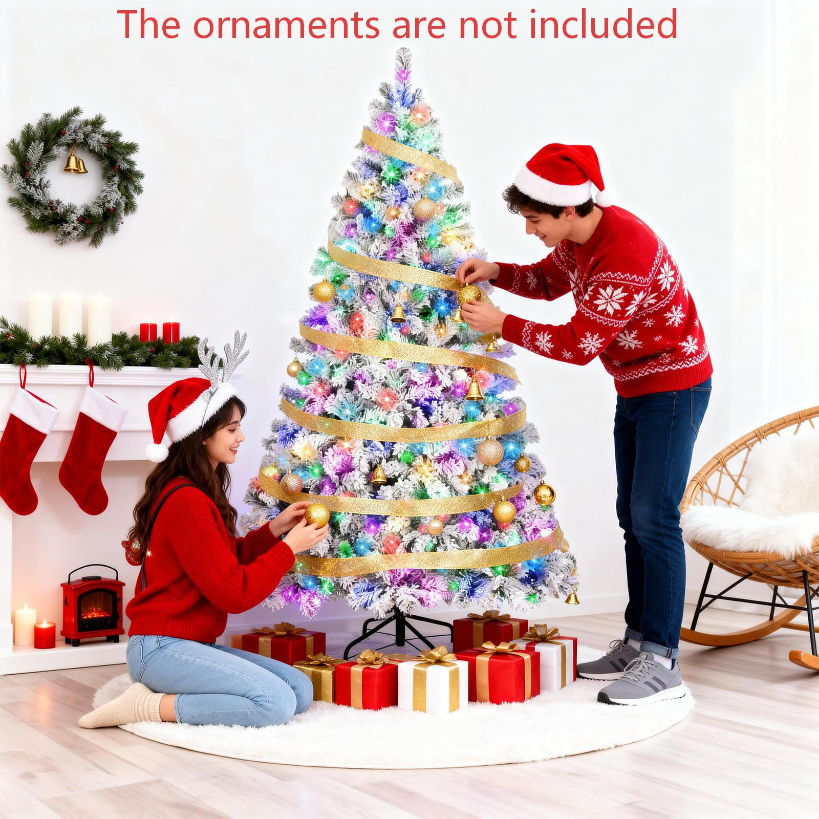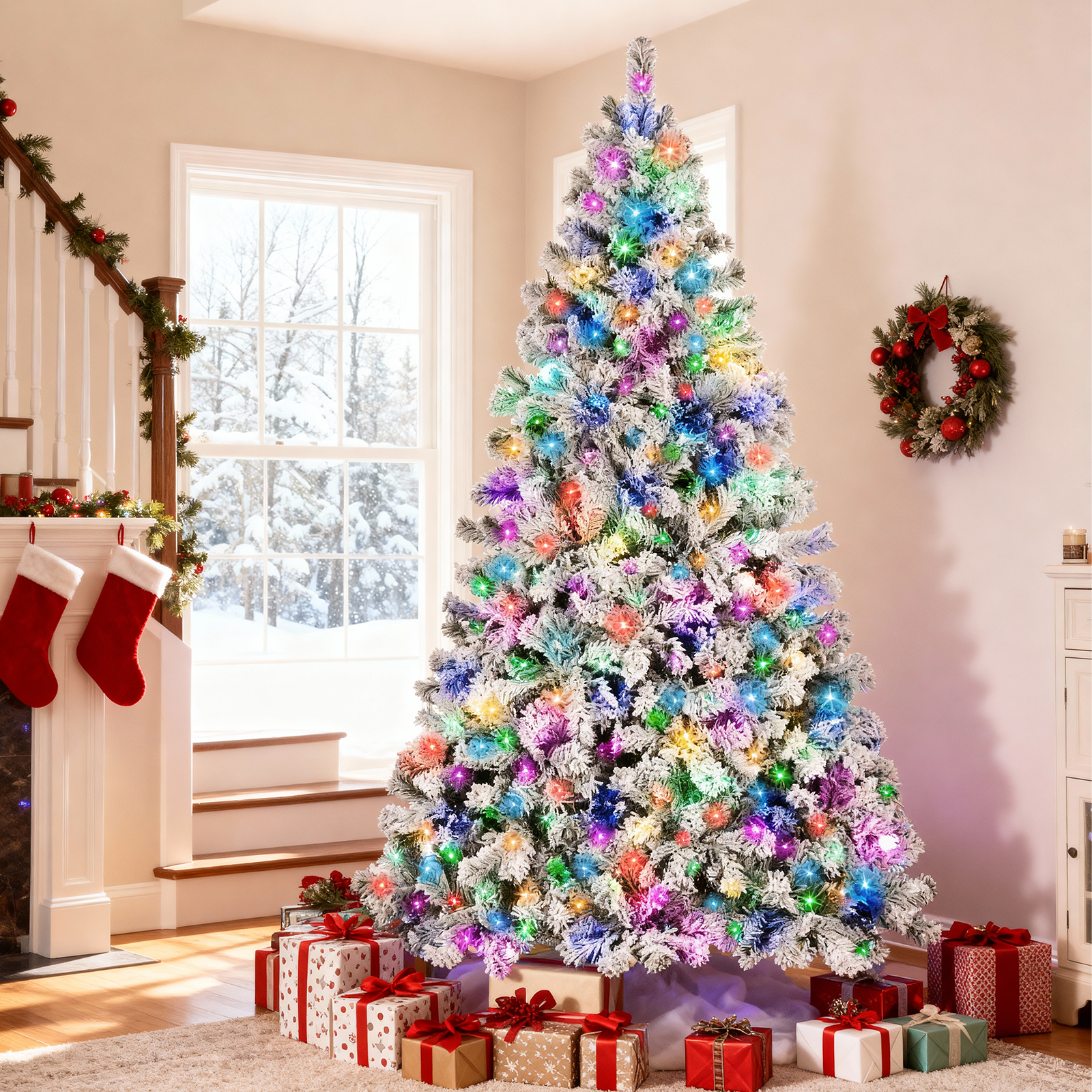 Vebreda 6ft Pre-Lit Snow Flocked Christmas Tree with Color-Changing RGB Lights, Full 821 Branch Tips, Artificial Holiday Decor for Home