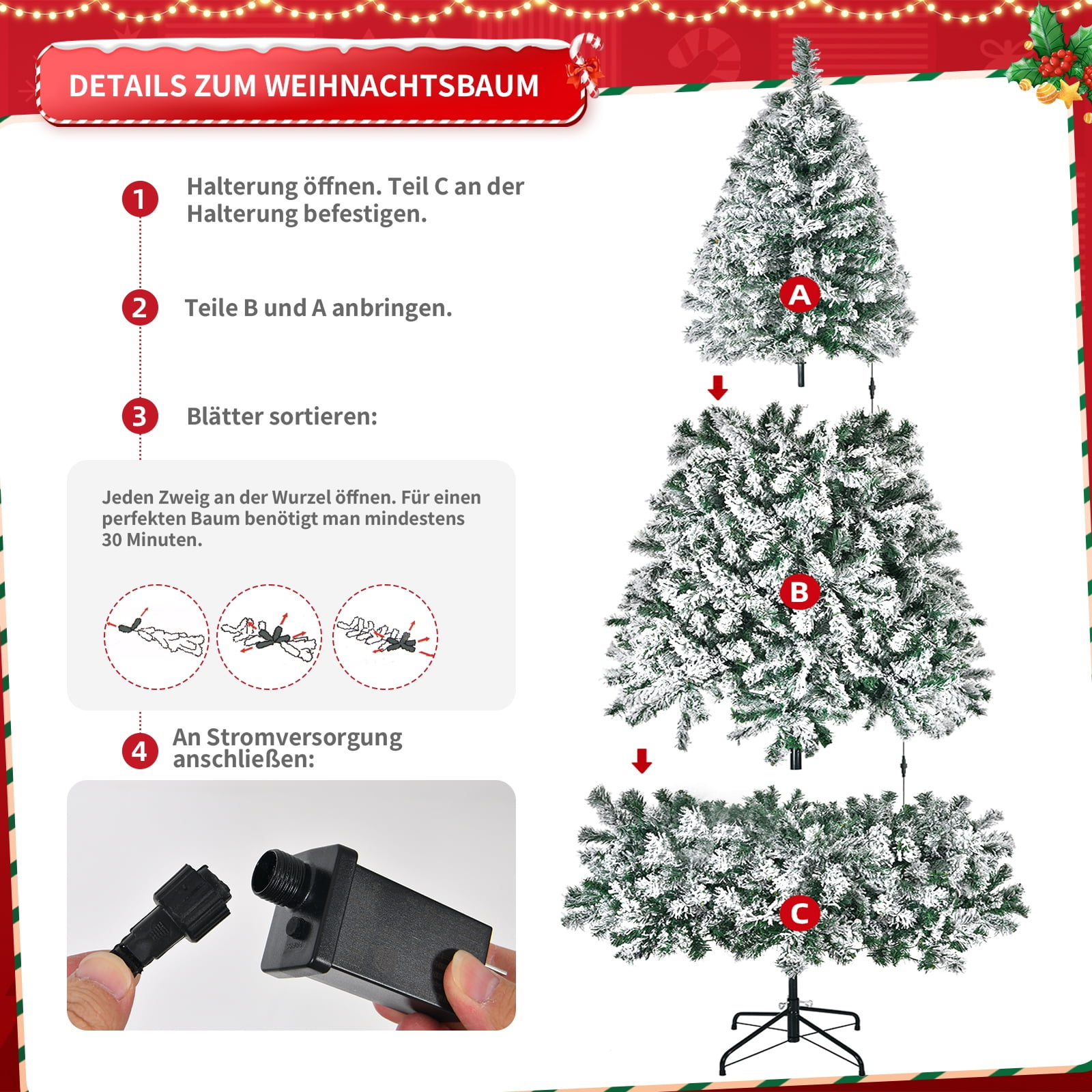 Natural Shape with Lush Branches: With 850 lush branches, this GIVIMO 6ft artificial Christmas tree is fully covered by thick flocking snow, which truly restores the visual experience of the Christmas tree in a natural snow scene. The realistic branches show a vigorous growth trend and endless natural charm. 100% New & Premium PVC needles: Choose premium odorless PVC as the raw materials of needles instead of ordinary plastic, this realistic Christmas tree has stronger resistance to deformation and erosion. The family-friendly PVC material meets the needs of both safety and durability, which is the first choice for home decoration. Easy to Assemble & Fast to Fluff: Designed with a fully hinged structure, our automatic Christmas tree will provide great convenience for your assembly and fluffing. Just assemble the 3 parts of the trunk and unfold the branches and leaves to get a complete Christmas tree. Sturdy Foldable Metal Stand: Made of high-quality hard metal, this X-shaped reinforced stand will further ensure stability and balance while helping the Christmas tree stand more upright and straighter. Besides, the foldable design realizes more convenient and faster storage. Perfect & Attractive Christmas Filling: Whether it is decorated in homes, offices, shopping malls, and other living places, or as a holiday gift for family, friends, and colleagues, this perfect flocked snow Christmas tree will be your ideal Choice. An eye-catching Christmas tree will bring a stronger and more joyful holiday atmosphere.