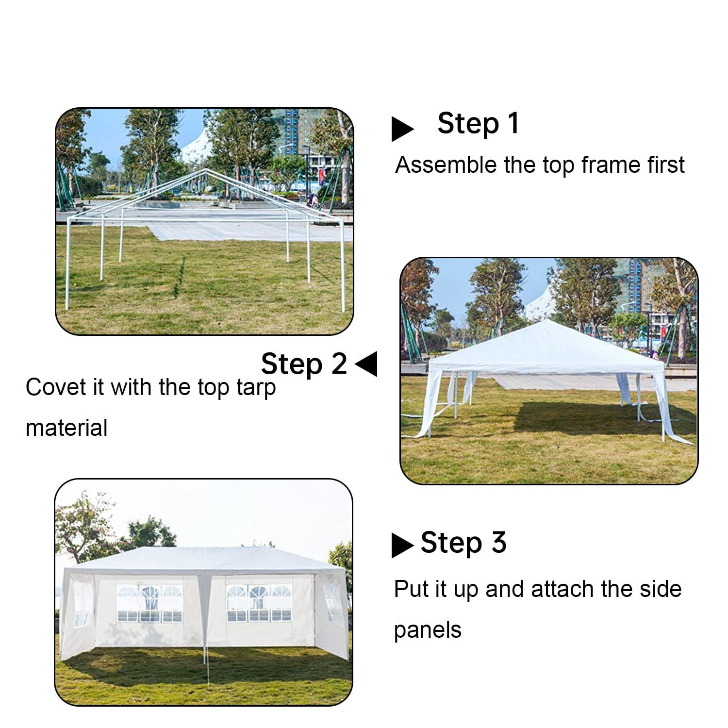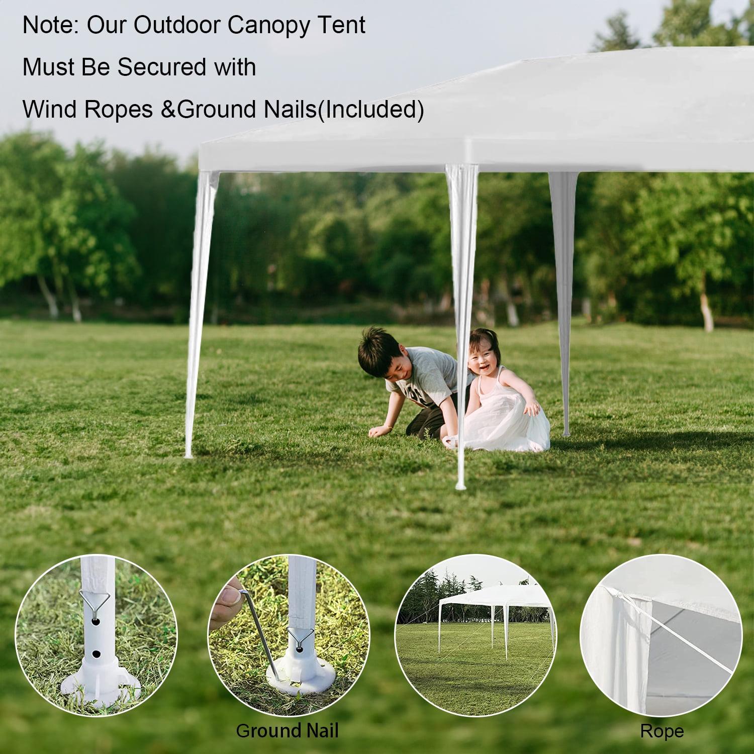 – High quality: The tent is made of polyethylene and is water and UV resistant. And has a rust and corrosion resistant white powder coated steel frame to ensure the sturdiness and stability of the white party tent. 10×20 canopy tent with walls equipped with ground pegs and ropes for added stability.