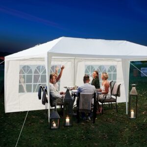 – Large size: The 10x20ft party tent is large enough to provide a spacious room to accommodate many people. This canopy tent has 4 removable side walls, each with clear PVC windows. The removable side walls allow for cross ventilation and air exchange on hot days.