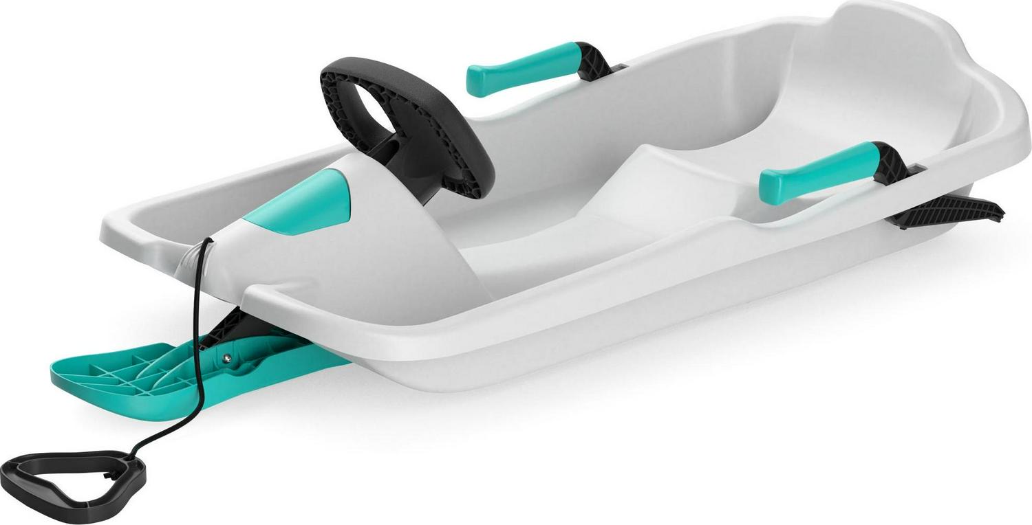– Full Control Kids Sled: The Nebula children’s sled includes two hand brakes, a steering wheel, and a steering system for the most control on the slopes