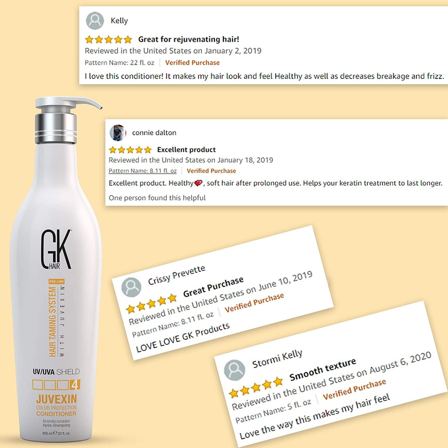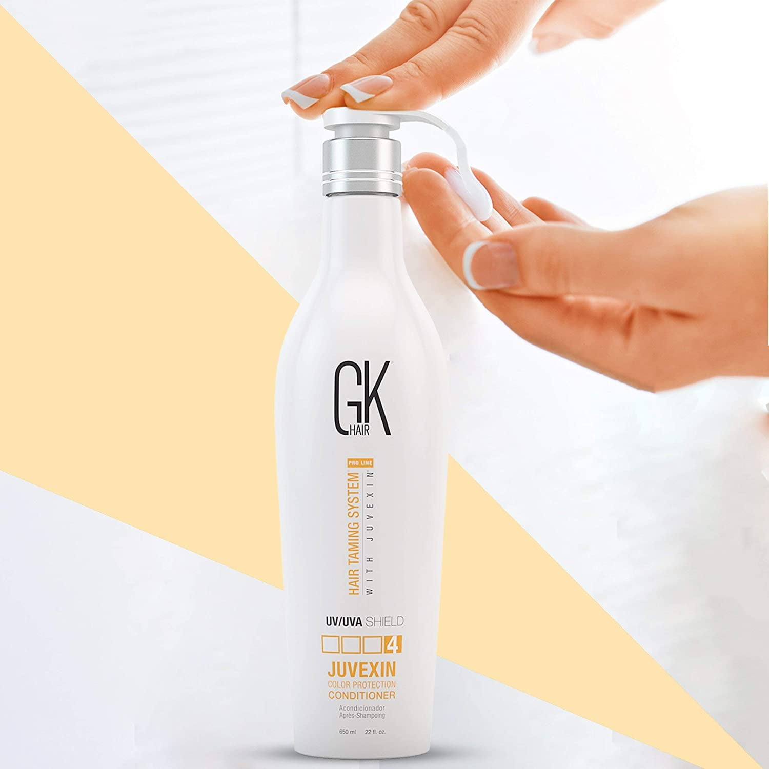 UV/ UVA Shield Protection: Shield conditioner keeps your hair vibrant and strong look by our All-Natural Formula, that helps protect against Sun and UV/ UVA rays. Our hair products nourishes and conditioned hair with strong formulation of keratin blend This conditioner is lightweight enough for daily use. Color Protection: This conditioner not only helps protect your hair, but also helps your hair color lasts longer. It cleanses the scalp, improving the overall health of your hair. A gentle everyday Conditioner is designed to volumize, strengthen, thicken and stimulate natural and color treated hair. Repairs Split Ends: With added aloe vera and rich in natural flower seed Oil’s ingredients, shield conditioner repairs hair from the bottom to the end powerfully. Resulting in natural hair repair densifying hair by naturally removing split ends, also nourishes and protects against future damage. No Harsh Chemicals: GKhair shield conditioner is free from any harmful chemicals. like sulfate, paraben, gluten, silicone and cruelty-free Free. This conditioner helps to revive thicker hair which transforms and manage detangling by fighting humidity. For Best Results: Apply after using GK Hair shield shampoo or after any hair color. GK Shield conditioner is used for external use only, It is not tested on animals and can be used as everyday wash.