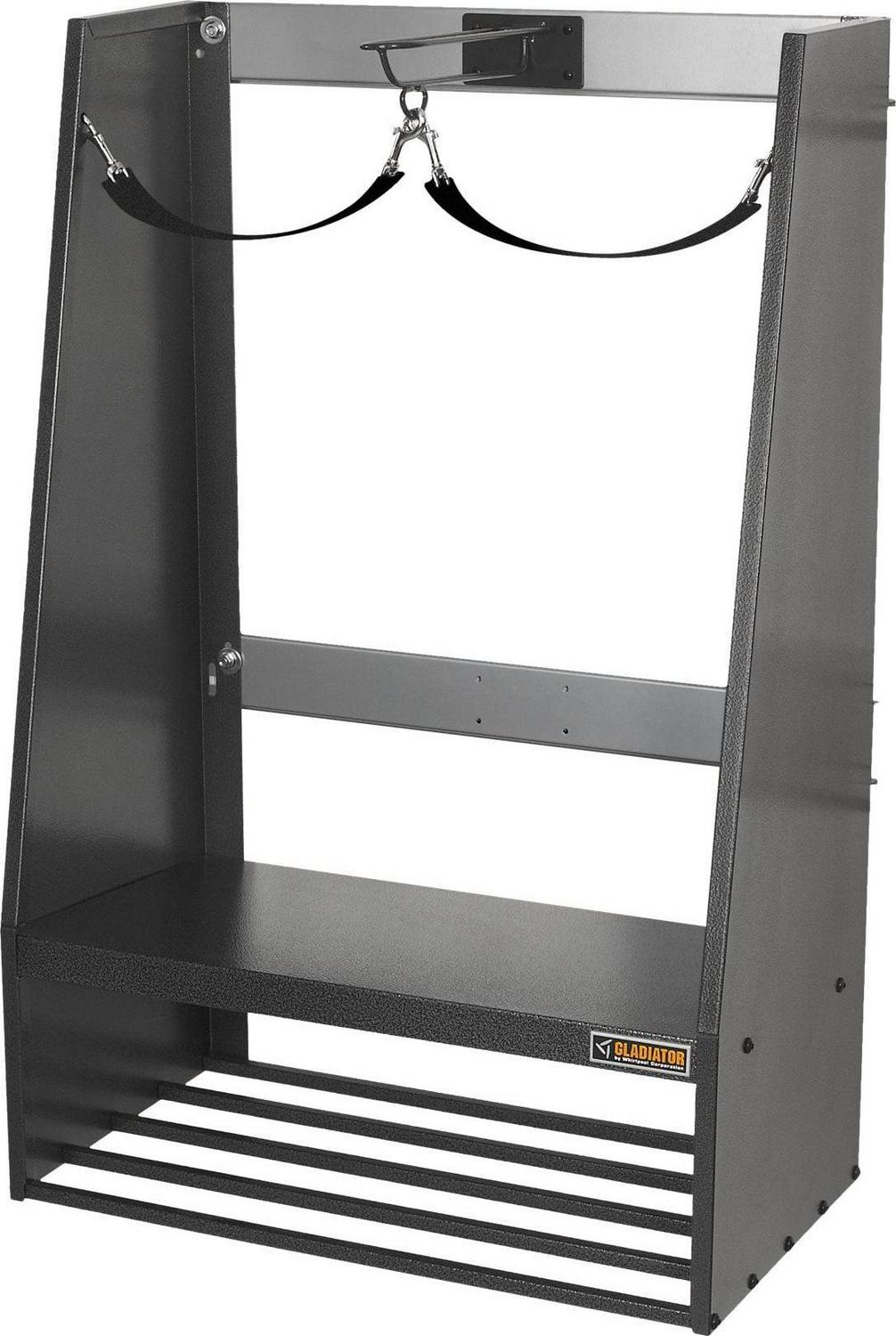 Can be easily hung and repositioned on any Gladiator wall system, when storage needs change. No tools are necessary to reposition.