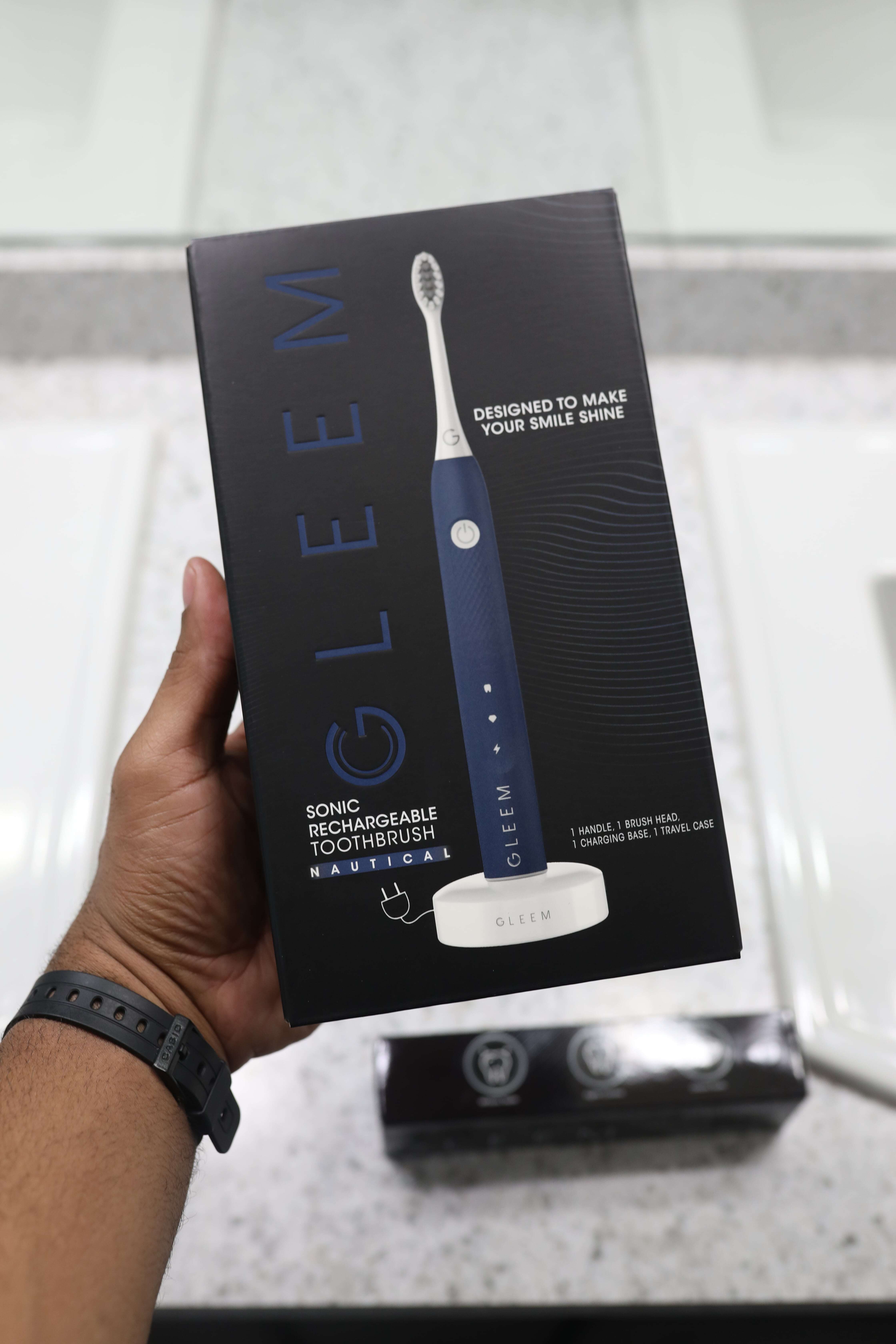 Cleans teeth with sonic bristle vibrations 2 brushing modes: Classic Clean and GLEEM Clean for extra brushing power Rechargeable handle with indicator light Included charging base lets you charge and store in one place Quiet motor for a quiet brushing experience Available in stunning colors; coral, aqua, slate, or pearl Take it anywhere with our GLEEM travel case Refill with GLEEM brush heads (sold separately)