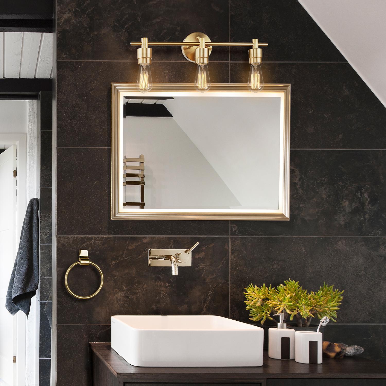 – MINIMALIST DESIGN: the super trendy matte brass finish of the Alexandria Bath Set with 3-Light Vanity Light is paired with an open socket construction, a clean silhouette and clean lines to showcase the wonderful world of minimalist design