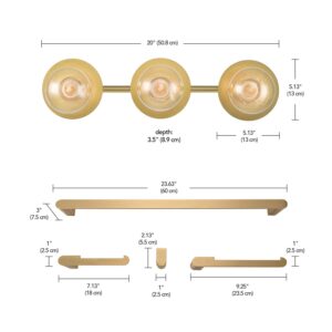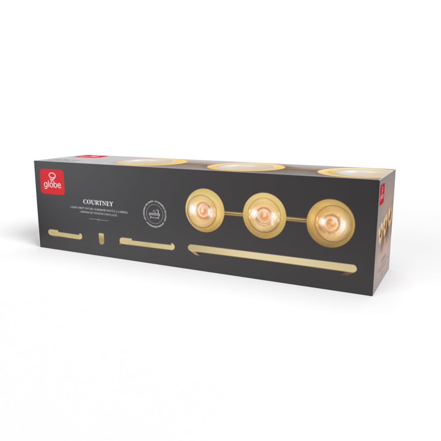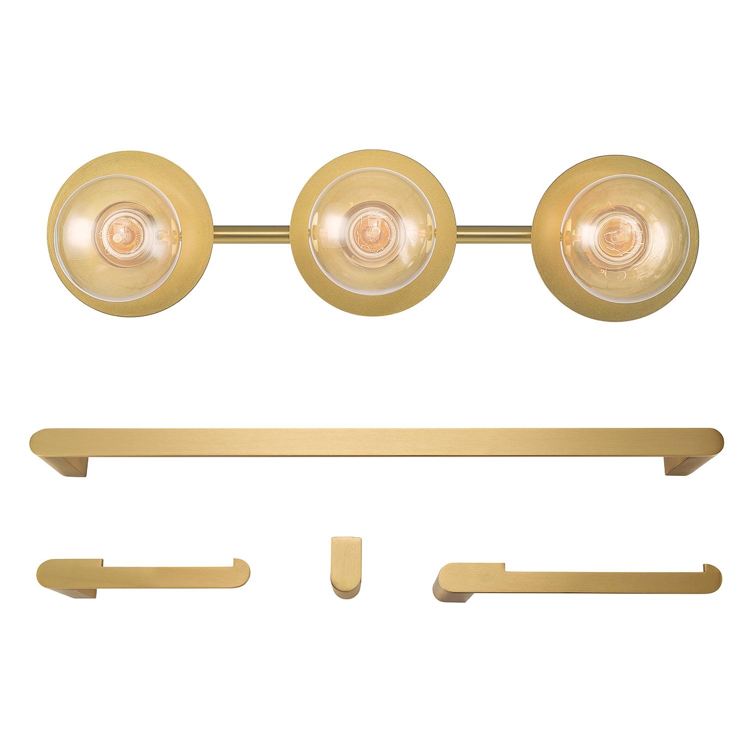 Globe Electric Courtney 5-Piece Matte Brass All-In-One Bathroom Set with 20 3-Light Vanity Light, 91004400