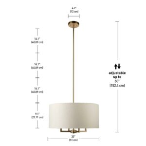 Globe Electric Emery 4-Light Matte Brass Pendant Lighting with Beige Fabric Shade, 60340