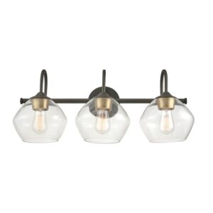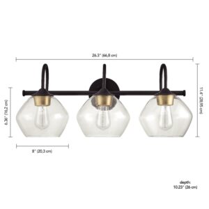 Globe Electric Harrow 3-Light Vanity Light, Dark Bronze, Antique Brass Accents, Clear Glass Shade, 51853