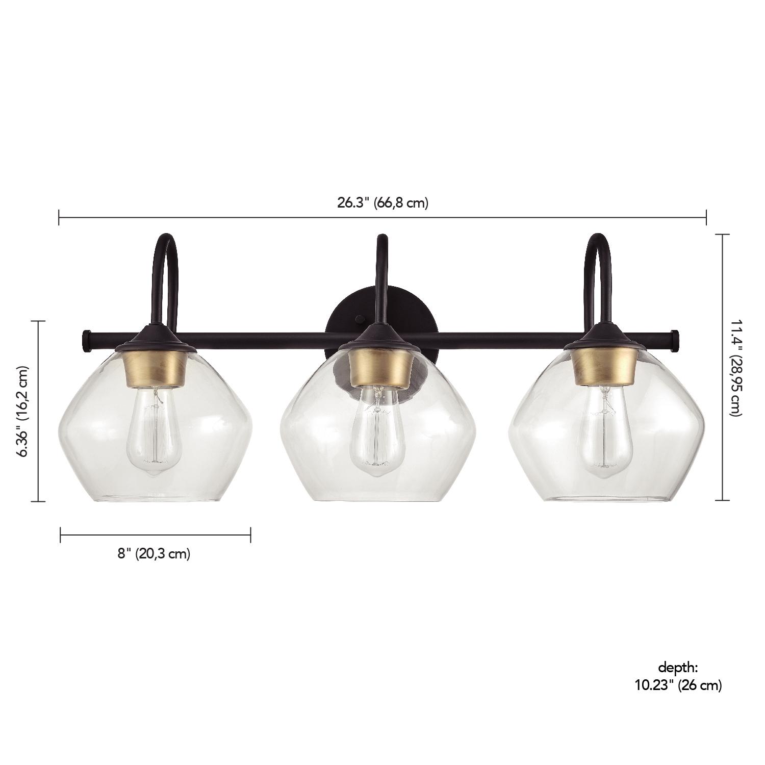 – CLEAR GLASS SHADE: the clear glass shades allow you to change the look of your vanity – Try a vintage Edison bulb for a mid-century modern look or use a designer bulb for a modern design