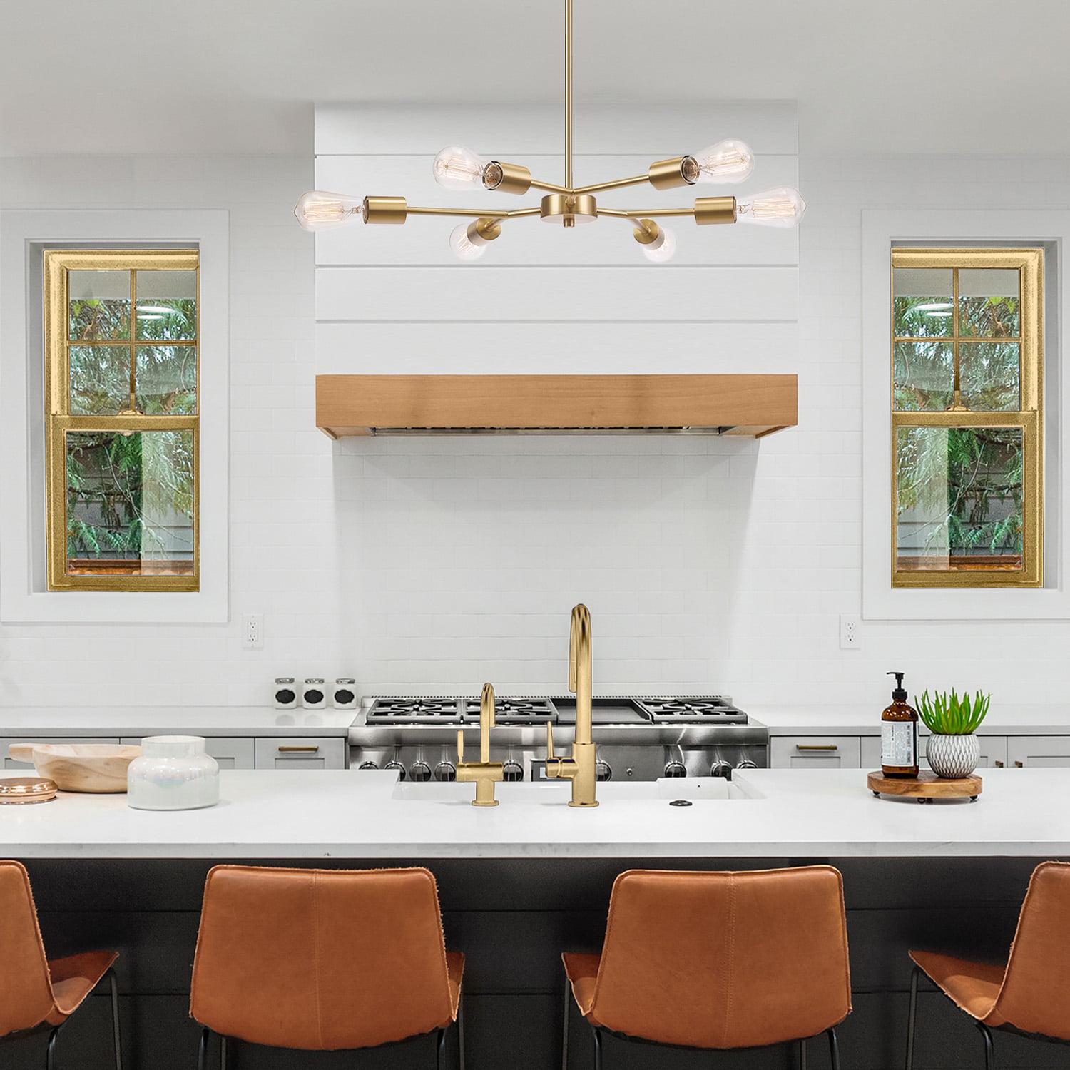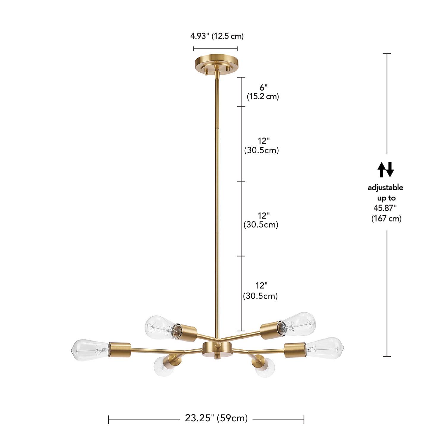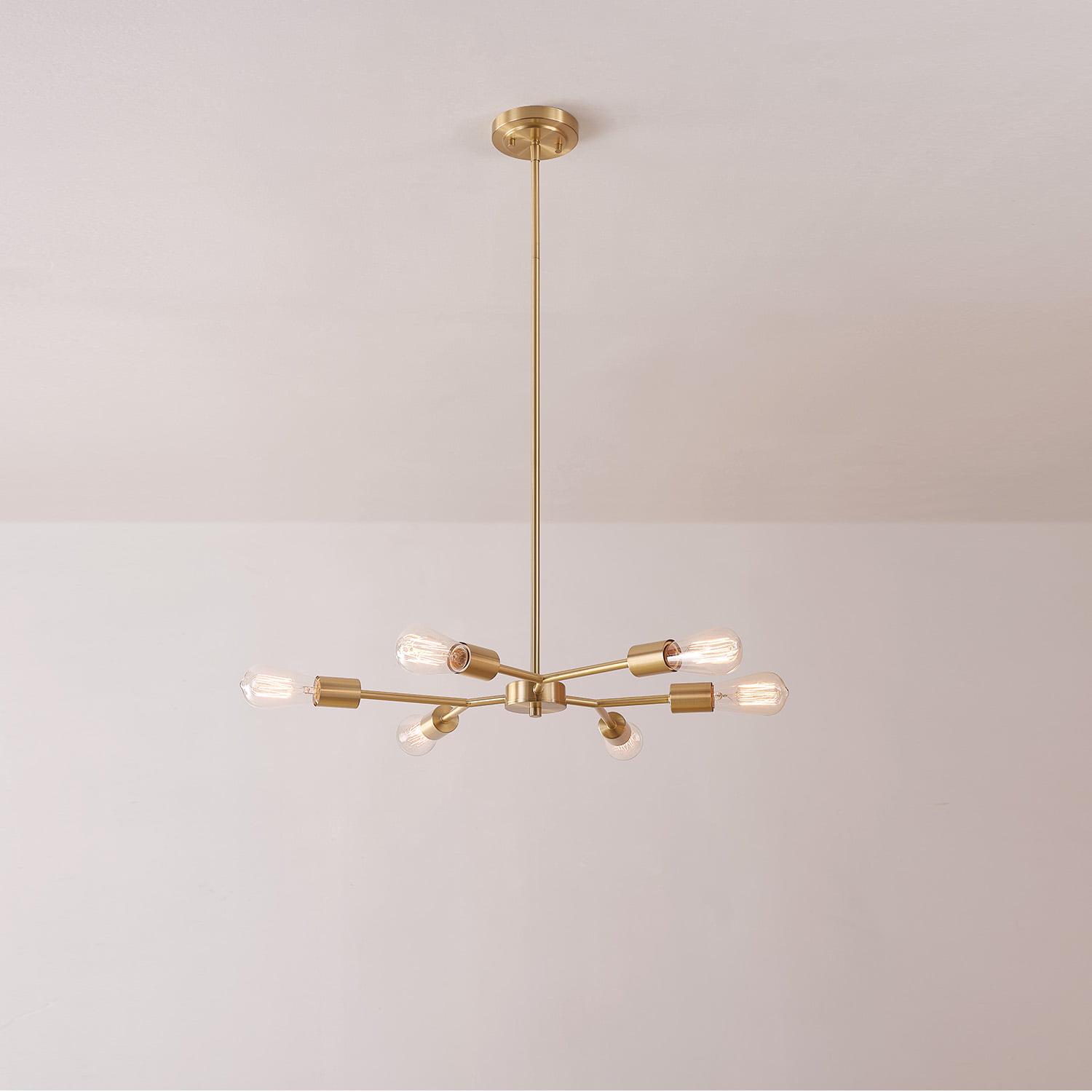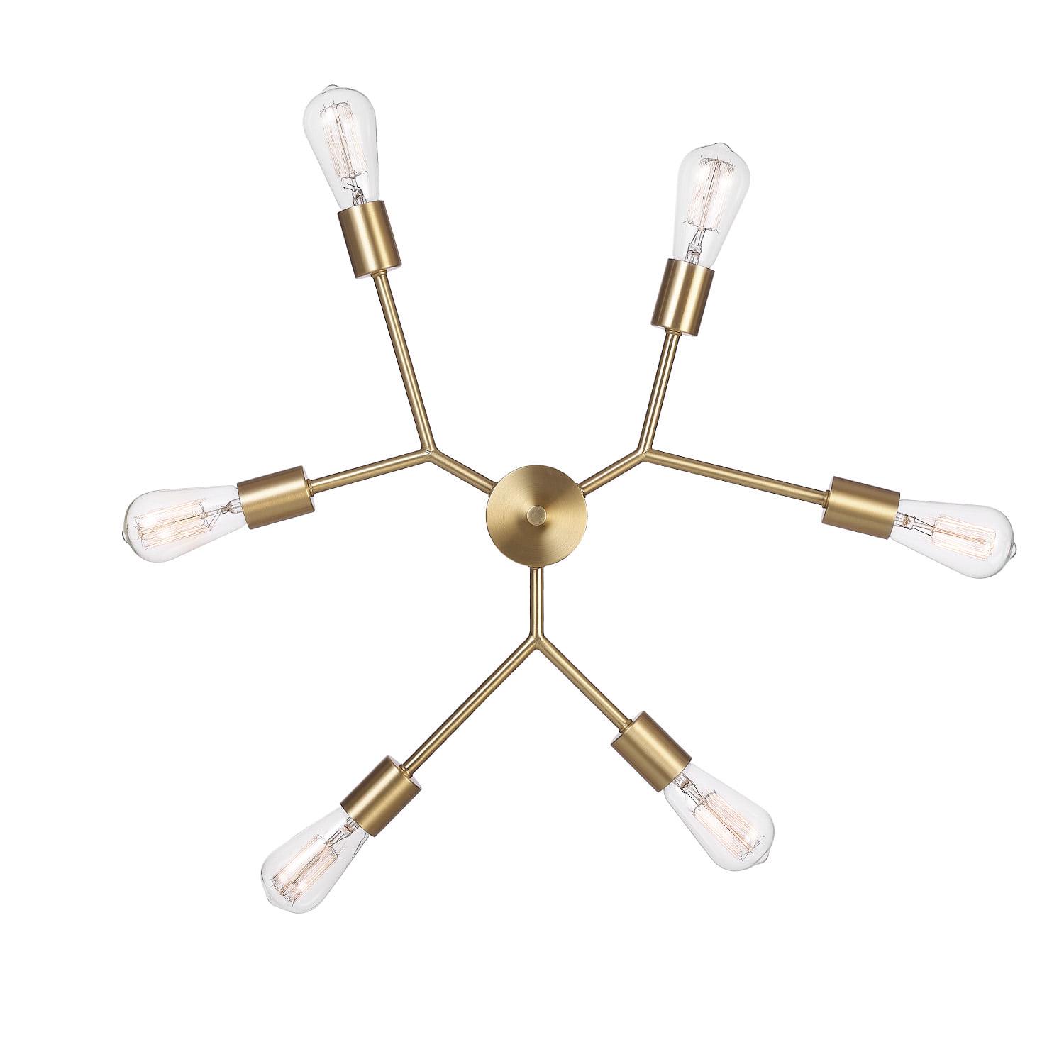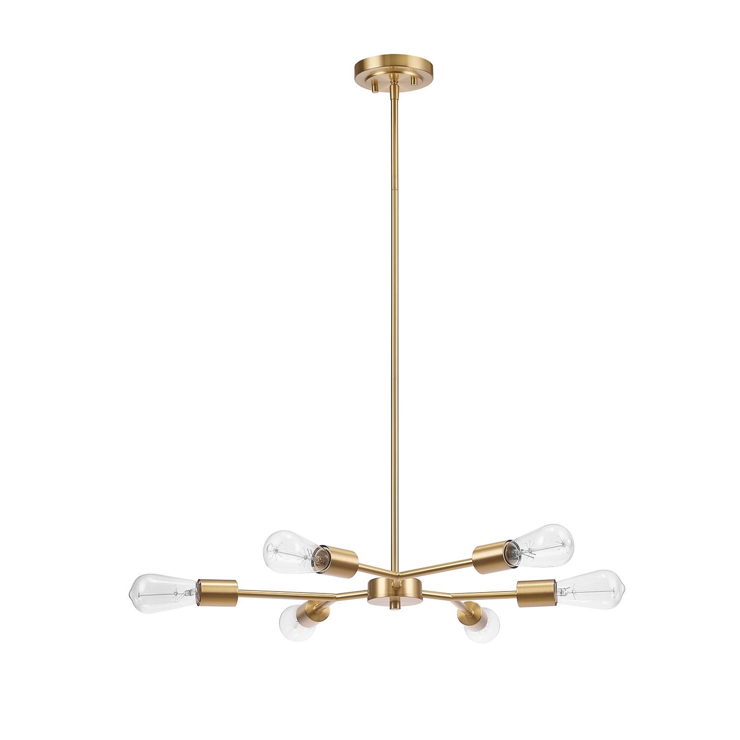 – INDUSTRIAL DESIGN: the industrial shape and sputnick design of the Tetra 6-Light Chandelier is complemented by a matte brass finish and exposed bulbs to create the ideal for hanging anywhere