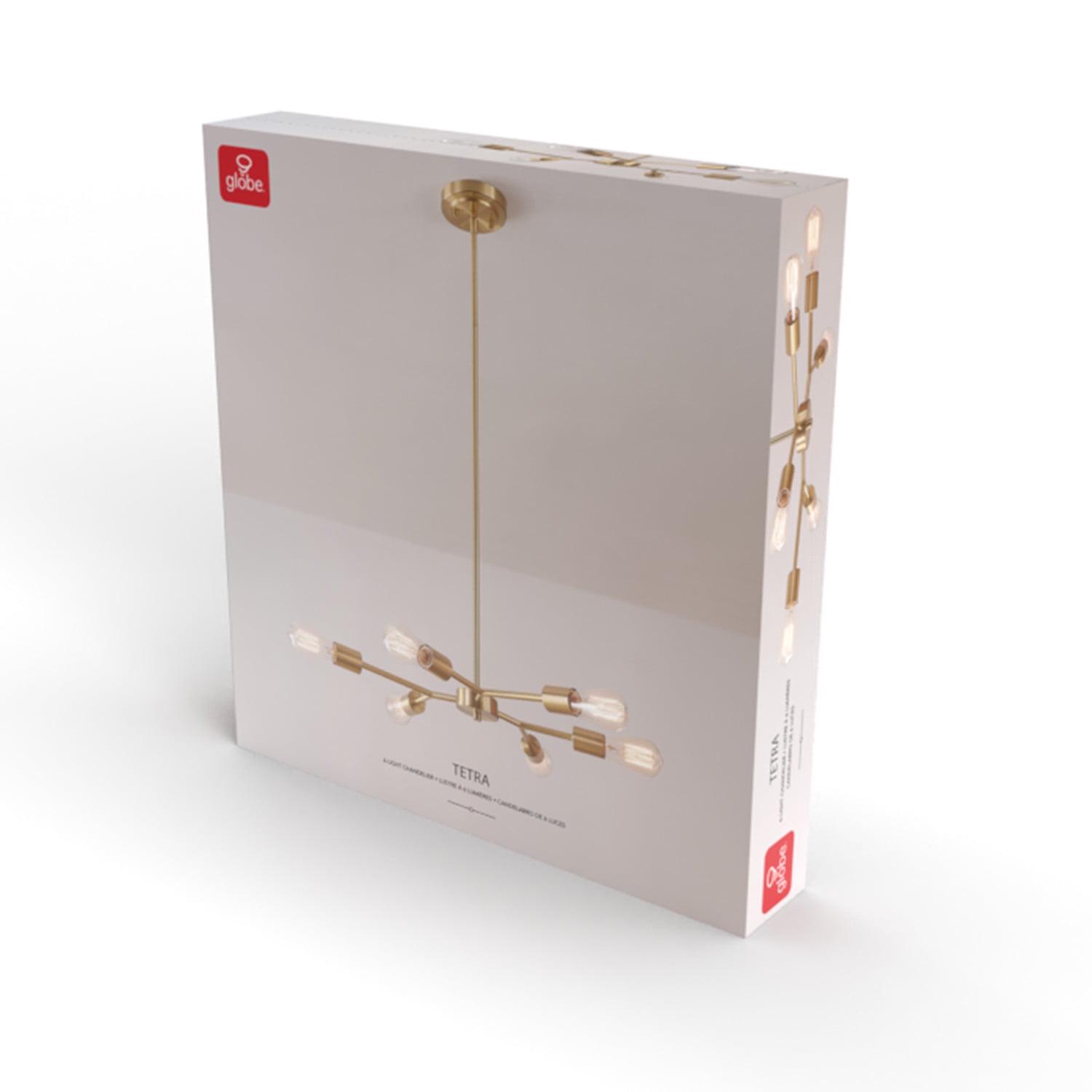 The Tetra Collection by Globe Electric has an open socket design, bringing a truly industrial element into your home while adding texture and style. You can place this light fixture anywhere you need a bold statement piece – be it a living room, dining room or your bedroom. This 6-Light Chandelier is simply gorgeous and is finished with a matte brass gold color that will accent any bulb you choose. Add vintage Edison style bulbs for a stunningly retro look or modernize the light with designer bulbs. Since this hanging pendant light uses standard E26 base bulbs, you can even use Globe Smart bulbs to create different lighting designs for every aesthetic and mood. The options are endless!