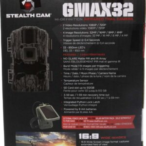 Looking for a new trail cam Packed full of features, the Stealth Cam GMAX32 1080p Vision Camera takes picture quality to all new heights at an affordable price point. The 32 MP GMAX series of trail cameras from Stealth Cam encompass all-new software innovations and a color TFT screen for viewing captured images and videos.