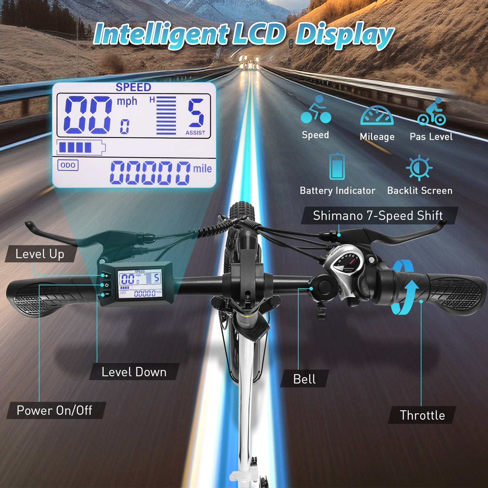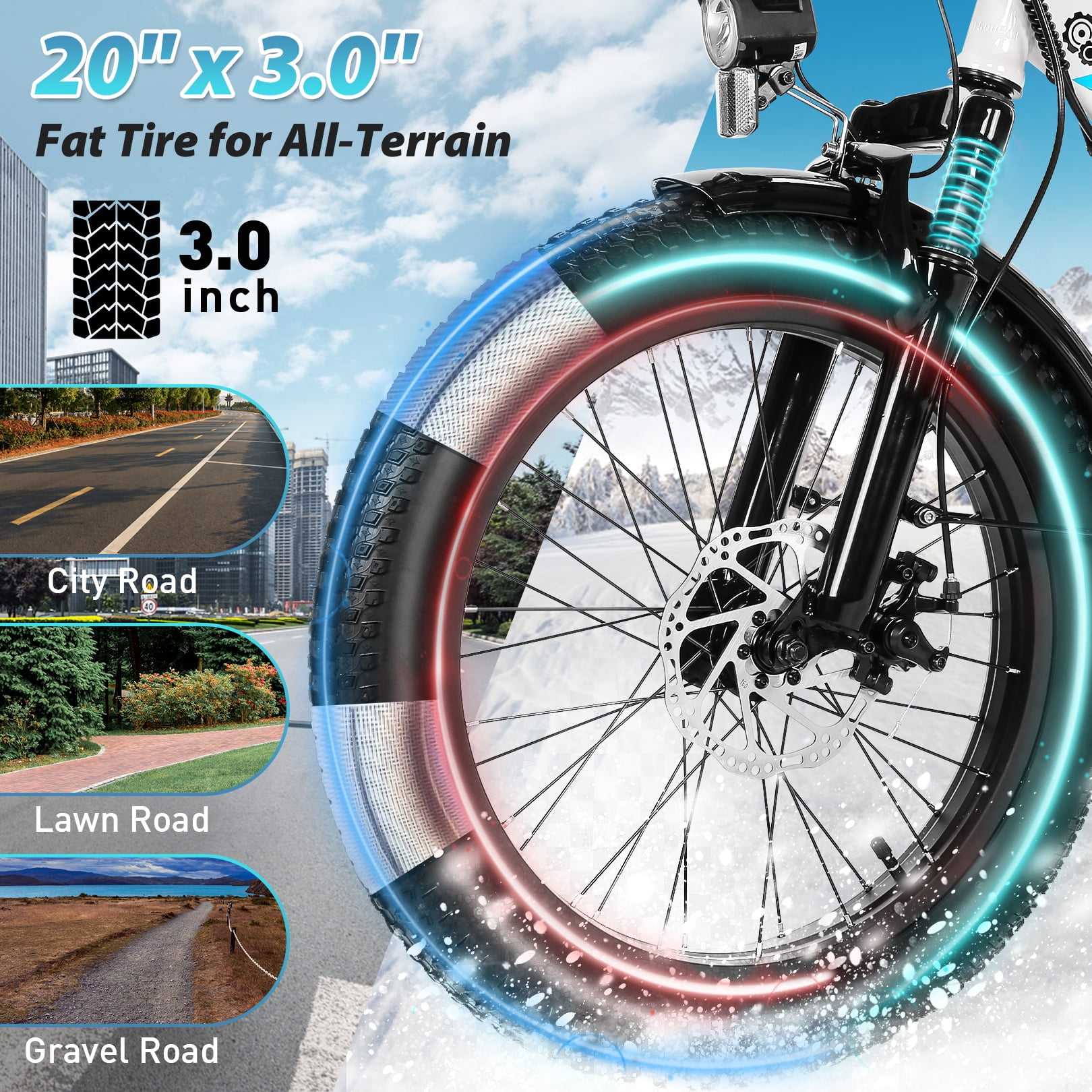 ✨Ebike Highlights: 500W Powerful Motor up to 19.8 MPH(700W peak power) 48V/10.4Ah Lithium-Ion Battery 4-5h fast charging (UL 2849 certified) 20 X 3.0 Inch Fat Tire Ebike LCD Intelligent Display with Backlight Suitable for Commuting, School, Exercise, Lesure Riding Suitable for City, Grass, Hillside, Highway, Gravel, Snow Road ✨Ebike Details: Color: Black/White Multi-People Use: Adults, Teen, Elder Ebike Frame: High-strength Carbon Steel Brake: Dual Mechanical Disc Brake Transmission: Shimano 7-speed Shifter 5 Riding Mode: E-bike Mode, Pedal-assisted Mode, Regular Ebike , Walk Push Mode, Cruise Control Mode Light: Integrated Headlight and Rear Reflector Other:Bell, Rear Rack, LCD Display ✨Ebike Specifications: Motor Power: 500W Maximum Speed: 19.8 Mph Battery: 48V 10.4Ah 500Wh Lithium Ion Battery (UL 2849 certified) Range:25(Electric Mode) – 50Miles(Pedal assist mode) Charging time: 4-5 hrs Ebike Tires: 20″ x 3.0″ Folding Ebike Size: 35.4″ x 17.7″ x 27.55″ Assembled Ebike Dimension: 66.5″ x 23.5″ x 46.8″ Recommand Height: 5′-6’5 Bicycle Net Weight: 67lbs Load capacity: 330lbs ✨Package Content: 1 x Electric Bike 1 x Lithium-Ion Battery 1 x Battery Charger 1 x Tool Kit 1 x User Manual 1 x Rear Rack 2 x Fenders 2 x Keys ✨ Note: If the electric bicycle stops running for 10 minutes or more, the battery will enter sleep mode. To restart, you need to wake up the battery by pressing and holding the button for about 3 seconds. Report Damage or Issues: If your e-bike is damaged on arrival, send photos/videos for help.