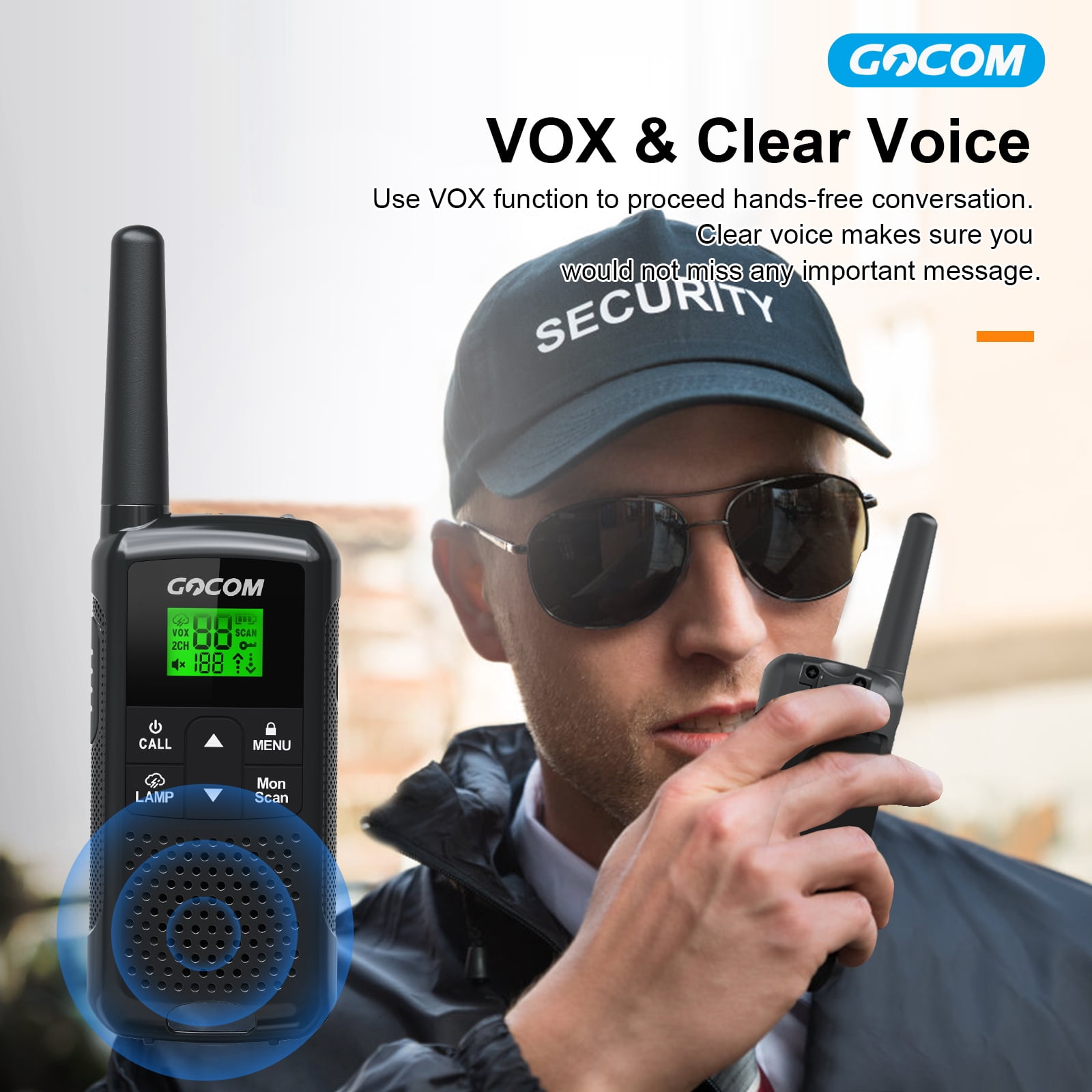 FRS Walkie Talkies – These two-way radio can communicate to any analog radios, in one-to-one or one-to-more options. The bold LCD faceplate provides high visibility. Each radio comes with a earbud earpiece style with built in microphone, belt clips, a dual USB charging cable and 6 pieces of rechargable AA battery. 22 Channels – GOCOM walkie talkie has 22 (Family Radio Service) channels and 121 CTCSS/CDCSS PRIVACY CODES system, 2262 different combinations of channels. Weather Channel – Can receive 10 weather channels to check weather conditions at any time to alert you of severe weather updates. No License is Required – no additional payment; 0-9 level squelch function; allows you to hear the sound clearly. Smart Function – GOCOM walkie talkie has easy-voice and sound-activation transmission (VOX) with 3 sensitivity levels for hands-free operation. It can be easily charged by using USB charging port. It also comes with a LED flashlight for night time usage.