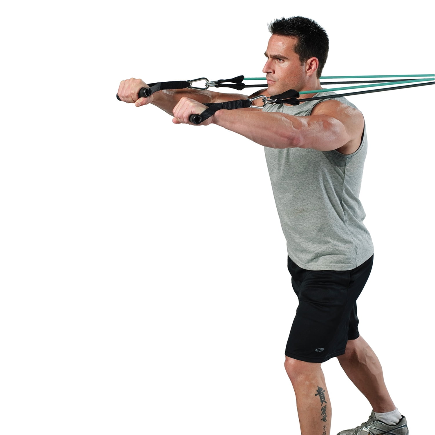 Upgrade fitness equipment with the GoFit GF-EPGYM ProGym Extreme. The kit includes a diverse array of exercise equipment to help users optimize their workouts. The kit includes a 20 lb. tube, 30 lb. tube, 40 lb. tube, 50 lb. tube, 2 handles, 2 leg straps, 2 door anchors, an exercise book and a carrying bag.* Before beginning any weight loss or exercise program, you should consult with your physician.