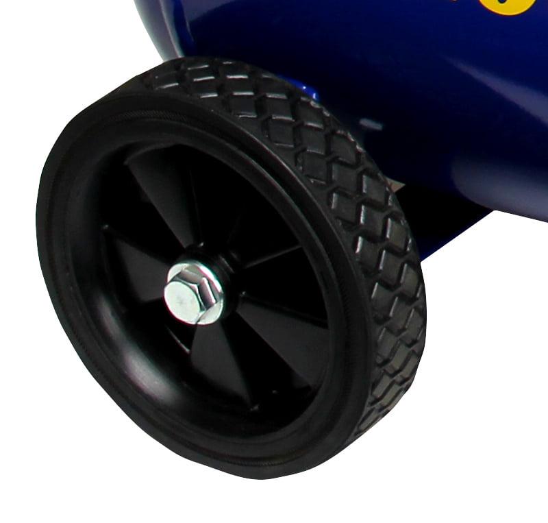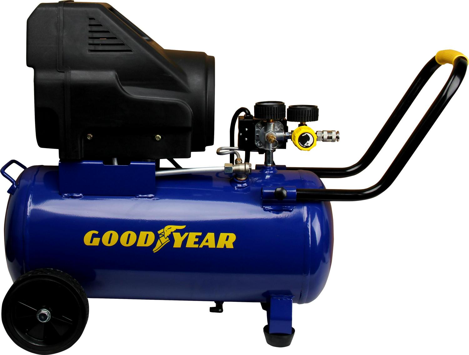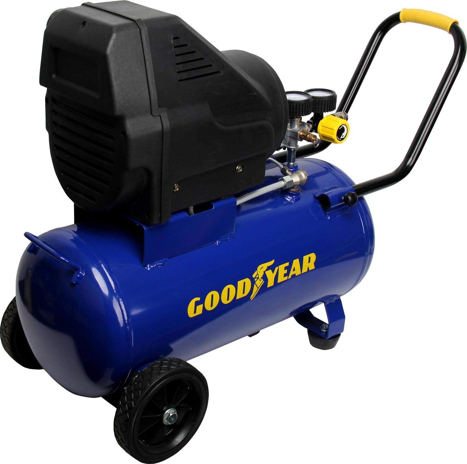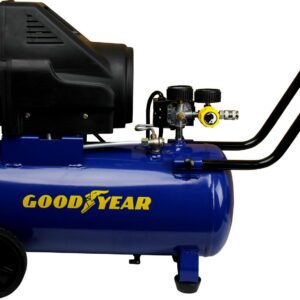 This is a GOODYEAR 1.5 Horsepower 8 Gallon Horizontal Air Compressor. The brand lets you know you have a long lasting rugged unit that can finish just about any job. It Delivers an impressive 4.8 SCFM at 40 PSI , 3.7 SCFM at 90 PSI with a Max Pressure of 150 PSI. There is a lot of power offered in this 8 gallon for its size. It has a strong Induction Motor with an Oil and Maintenance Free Pump. You don’t have to be concerned about changing the oil or replacing belts. Does great in cold weather starts as well. Whatever job you have whether it be nailing or stapling, to small air tool jobs or just standard tire inflation, the GOODYEAR 8 gallon air compressor will get the job done. GOODYEAR Air Compressor 8 Gallon Horizontal Portable 1.5 Horsepower Induction Motor Oil Free and Maintenance Free Pump 4.8 SCFM at 40 PSI 3.7 SCFM at 90 PSI 150 PSI Great for Nailing or stapling projects Small Air Tool Jobs All inflation needs Accessories and hose not included