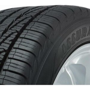 The all-season Assurance WeatherReady tires by Goodyear deliver all-weather traction. They feature weather reactive technology that makes tread to lock while cornering and then open adding biting edges on wet surfaces. These tires feature an asymmetric tread design with sweeping traction grooves that evacuate water from the contact patch to improve wet surface grip. The special all-season rubber compound with soybean oil remains pliant even in cold temperatures.