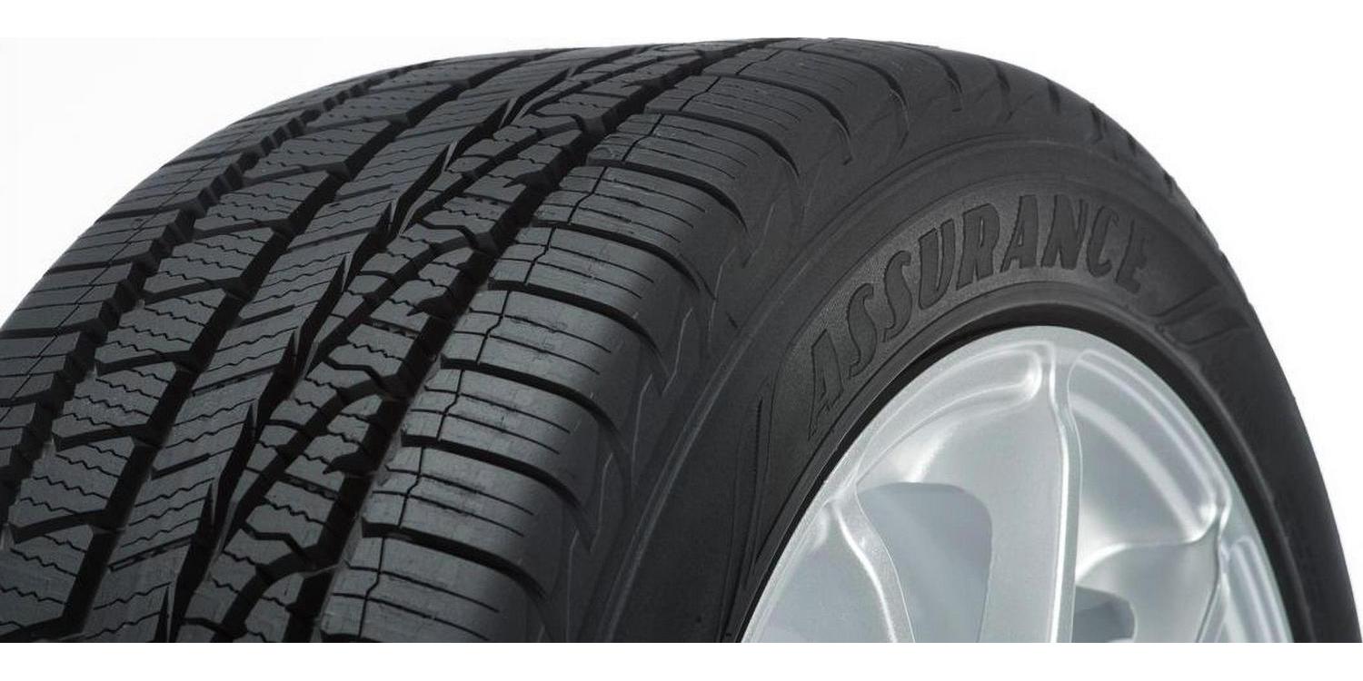 The all-season Assurance WeatherReady tires by Goodyear deliver all-weather traction. They feature weather reactive technology that makes tread to lock while cornering and then open adding biting edges on wet surfaces. These tires feature an asymmetric tread design with sweeping traction grooves that evacuate water from the contact patch to improve wet surface grip. The special all-season rubber compound with soybean oil remains pliant even in cold temperatures.