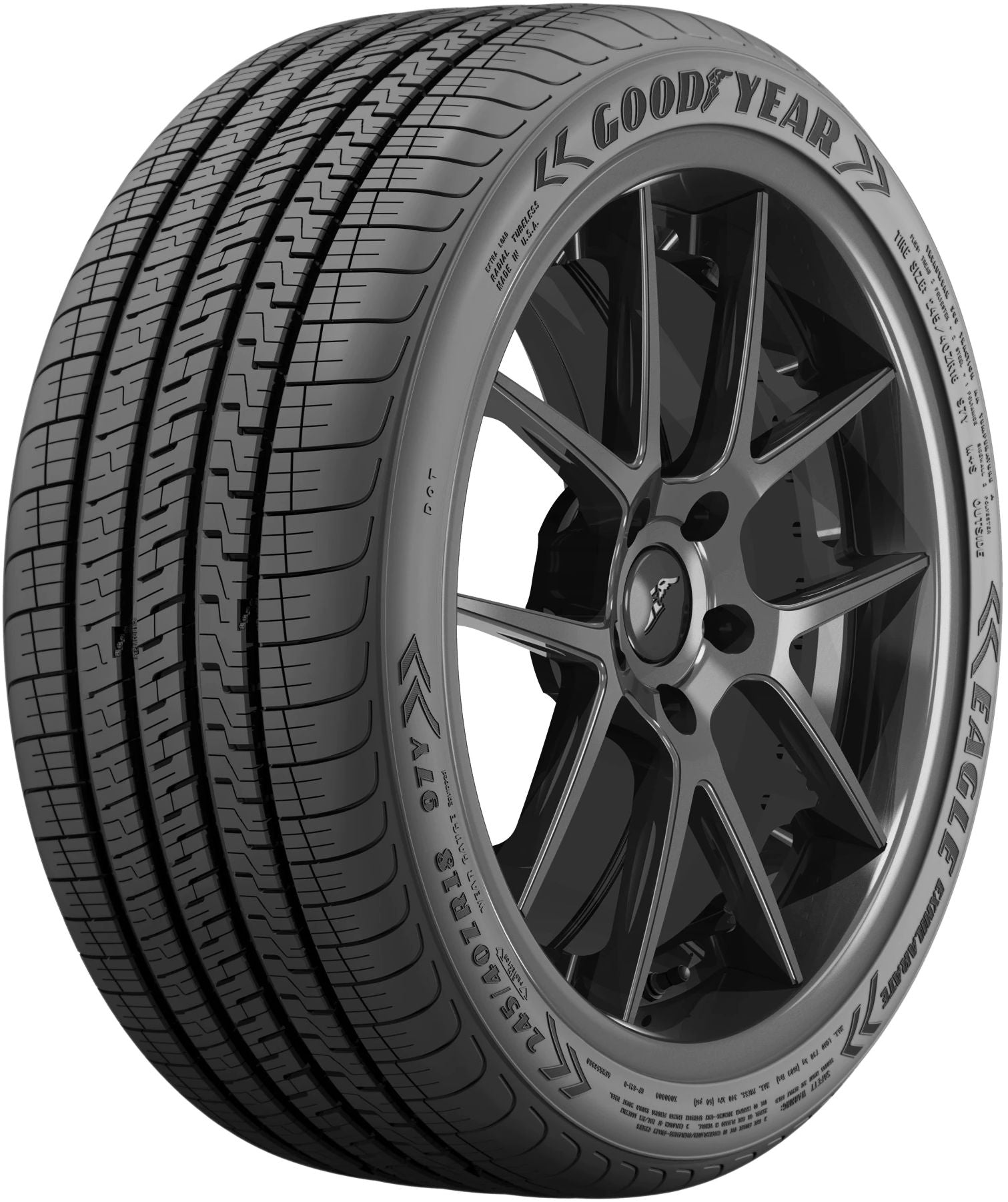 The Eagle Exhilarate four-season UHP tires are designed to offer a perfect grip and stability on wet, dry and even slightly snowy surfaces.