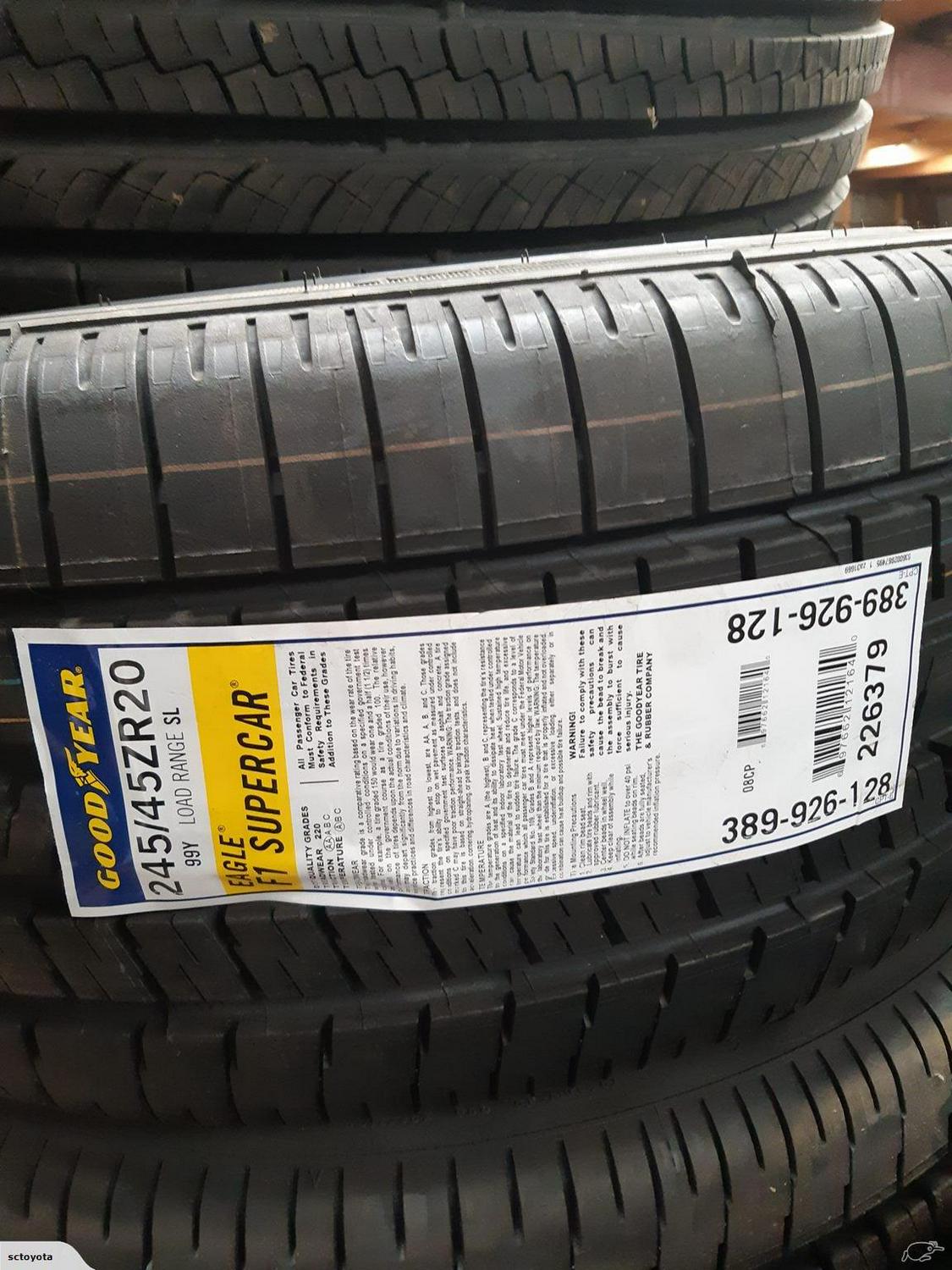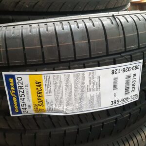 Goodyear Eagle F1 SuperCar 245/45R20 99YOVERVIEWGet exceptional race-inspired performance with the Goodyear Eagle F1 SuperCar. The Eagle F1 SuperCar features Goodyear’s Aquachannel grooves to resist hydroplaning and a multi-radius profile with massive shoulder blocks that ensure sharp, responsive handling.