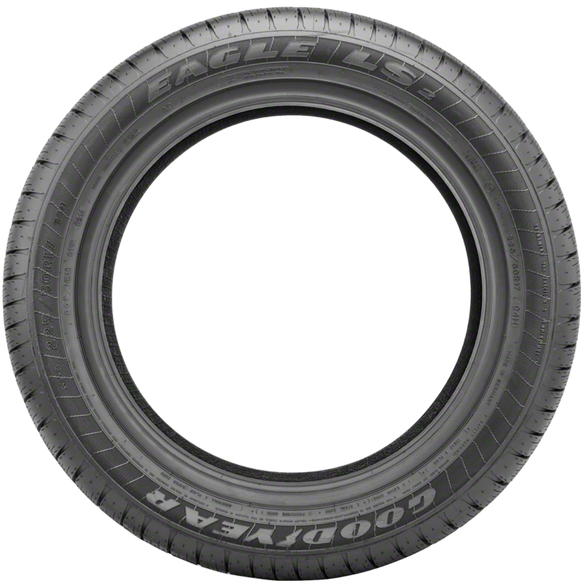 Attention! Due to the size of the tires, Packages might be SEPARATED in the courier facility and not be DELIVERED on the SAME DAY, even though we do ship them together. Tracking information can be checked by logging on to the courier website with the master tracking number you will receive via email. For example, you can receive 3 tires in one day and the 4th one the next day or the day after, or one tire in one day and the second one day after. We understand that this is a big inconvenience for our buyers, however, this is ABSOLUTELY out of our control. Goodyear Eagle LS2 (N0) FEATURES AND BENEFITS Enhanced cornering ability Precise steering response Quiet tire Easy handling All weather traction N0 tire for Porsche vehicles OVERVIEW The Goodyear Eagle LS2 (N0) is an all season touring tire built for passenger vehicles and SUVs. The tire was designed and manufactured for Porchse vehicles as its original equipment tire. The N0 notes that it is the first approved tire to be mounted as an original equipment tire on these vehicles. These tires ensure a comfortable and safe performance. This all season tire provides excellent all weather traction, including in light snow. The specially designed tread pattern grips the road well in all weather conditions. The wide tread grooves enhance the tire’s anti-hydroplaning ability and wet traction, to ensure a safer drive. This tire provides a quiet and comfortable drive. The computer optimized tread block design reduces the road noise heard in the cabin of the vehicle. At the same time, it follows the road surface well, enabling the driver to have a great feel for the road. Because of this the driver is able to respond quicker to changes in the road surface and avoid dangerous situations. The reinforced structure of the tire improves its high speed strength and durability. This added stability, along with the special tread pattern, ensures easy handling of the tire as well as enhanced steering responsiveness. The Eagle LS2 (N0)’s shoulder tread block pattern increases its cornering and maneuvering ability. The tire responds well to the driver’s commands, boosting its safety and ride quality. Manufacturers recommend changing tires every 10 years. As long as tires are properly stored before they are sold, the year of their manufacture will not shorten their service life.