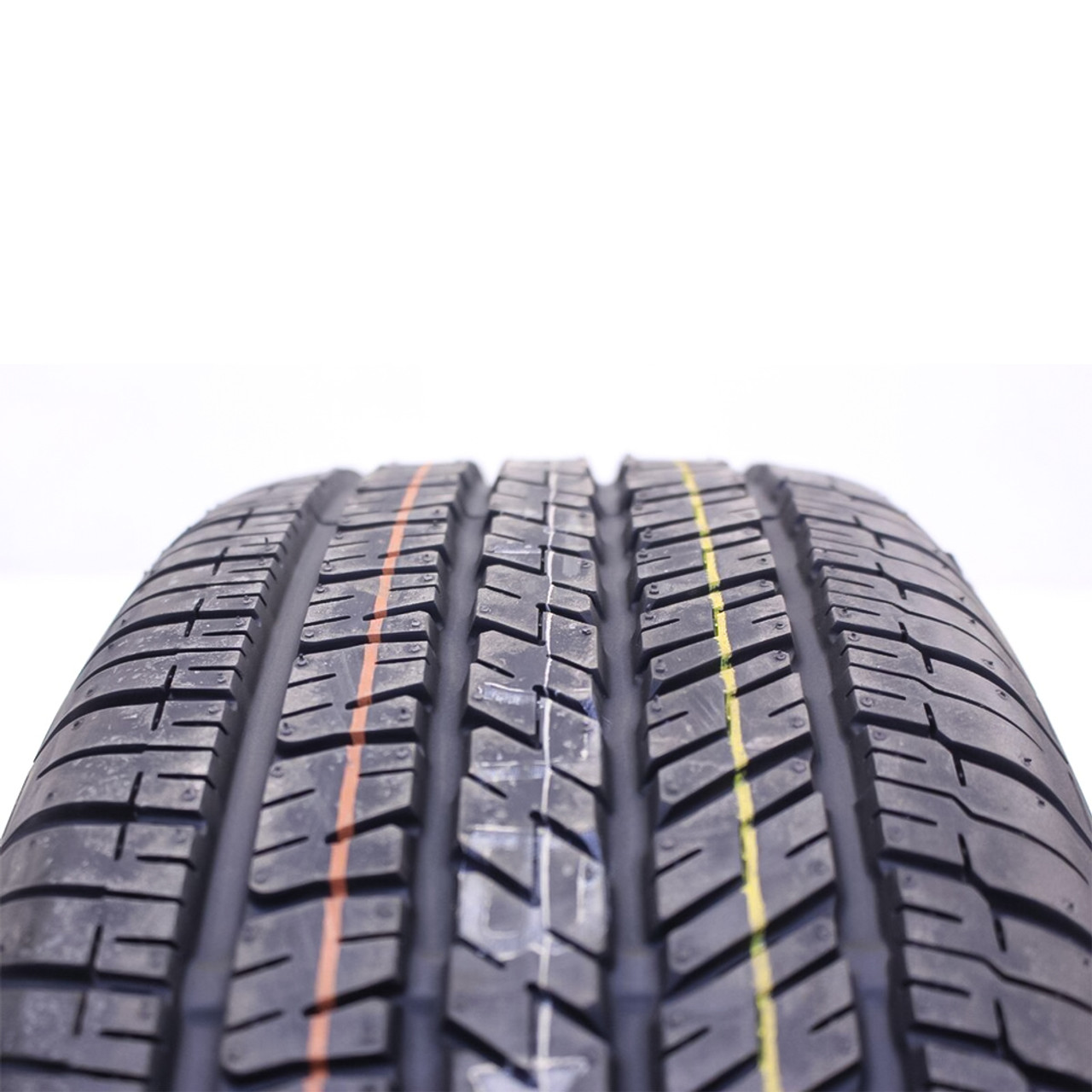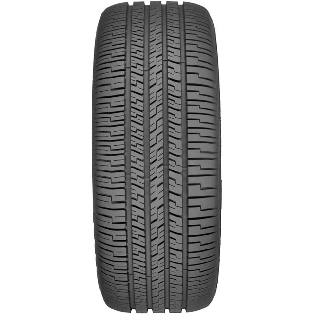 All season traction is promoted with this model. It utilizes the asymmetric tread design and all season compound, in order to optimize the year round application. The tread elements firmly grip the road surface with extra biting edges, upgrading the dry, wet, and winter weather traction. Additionally, the rubber compound keeps the rubber flexibility during the performance. Hydroplaning is avoided with the circumferential grooves, as they disperse water and slush from below the footprint.