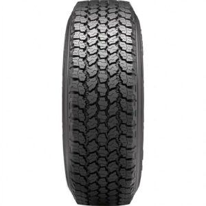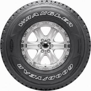 The Goodyear Wrangler All-Terrain Adventure with Kevlar is a premium all-terrain tire specially designed for drivers who are looking for off-road versatility, durability, and comfort. Ideal for light trucks, vans, one-ton pickup trucks, and SUVs, the Goodyear Wrangler All-Terrain Adventure with Kevlar features a specialized, strong rubber tread compound molded into a multi-faceted symmetric tread pattern. The combination of both the compound and the pattern gives the tire a rugged and aggressive look. Just perfect for driving on and off the road. To help clear mud and snow are the open shoulder blocks and outboard circumferential grooves. The sidewall rubber compound is made with Goodyear’s Durawall Technology which makes the polyester cord resistant to punctures, scuffing, abrasion, and cuts. The Goodyear Wrangler All-Terrain Adventure with Kevlar is branded with the mountain/snowflake symbol which means it has passed the auto industry’s severe snow service standards.