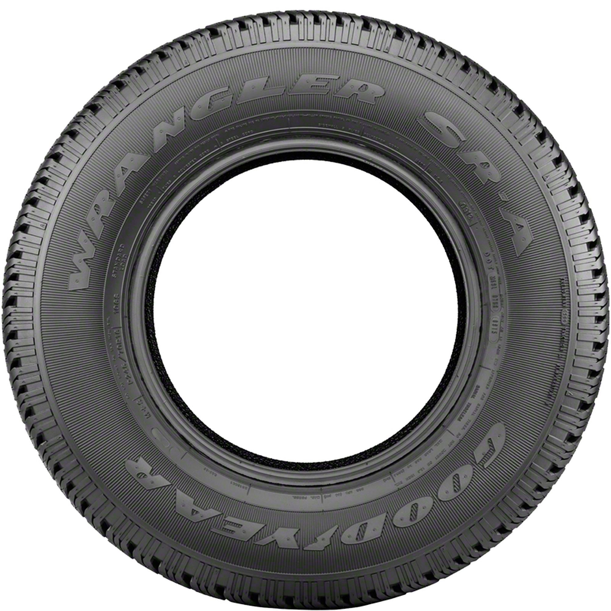 Goodyear Wrangler SR-A P225/70R15 100S OVERVIEW Goodyear Wrangler SR-A Tires provide exceptional highway driving and superior enhanced traction. You will love the long-wearing tread and how they handle on wet roads. For a quiet, comfortable ride you can enjoy, try the Wrangler SR-A series. These tires are designed for SUV and light trucks and are good for all-season and all-terrain use. In addition to the all-season performance, the Goodyear Wrangler SR-A tires have been designed for optimal handling in a variety of conditions such as wet, rain, snow, and even ice. For many SUV and light truck manufacturers, the Goodyear Wrangler SR-A tires were original equipment. Microgrooves inside the tire treads allow for traction in rough weather and ensure that water and mud are quickly expelled from the tires. The Wrangler SR-A tires provide enhanced cornering through the computerized tread design. This also gives your treads thick, biting edges to help make turns more smooth and steady. On and off road users will enjoy the stability and durability of the Goodyear Wrangler SR-A tire.