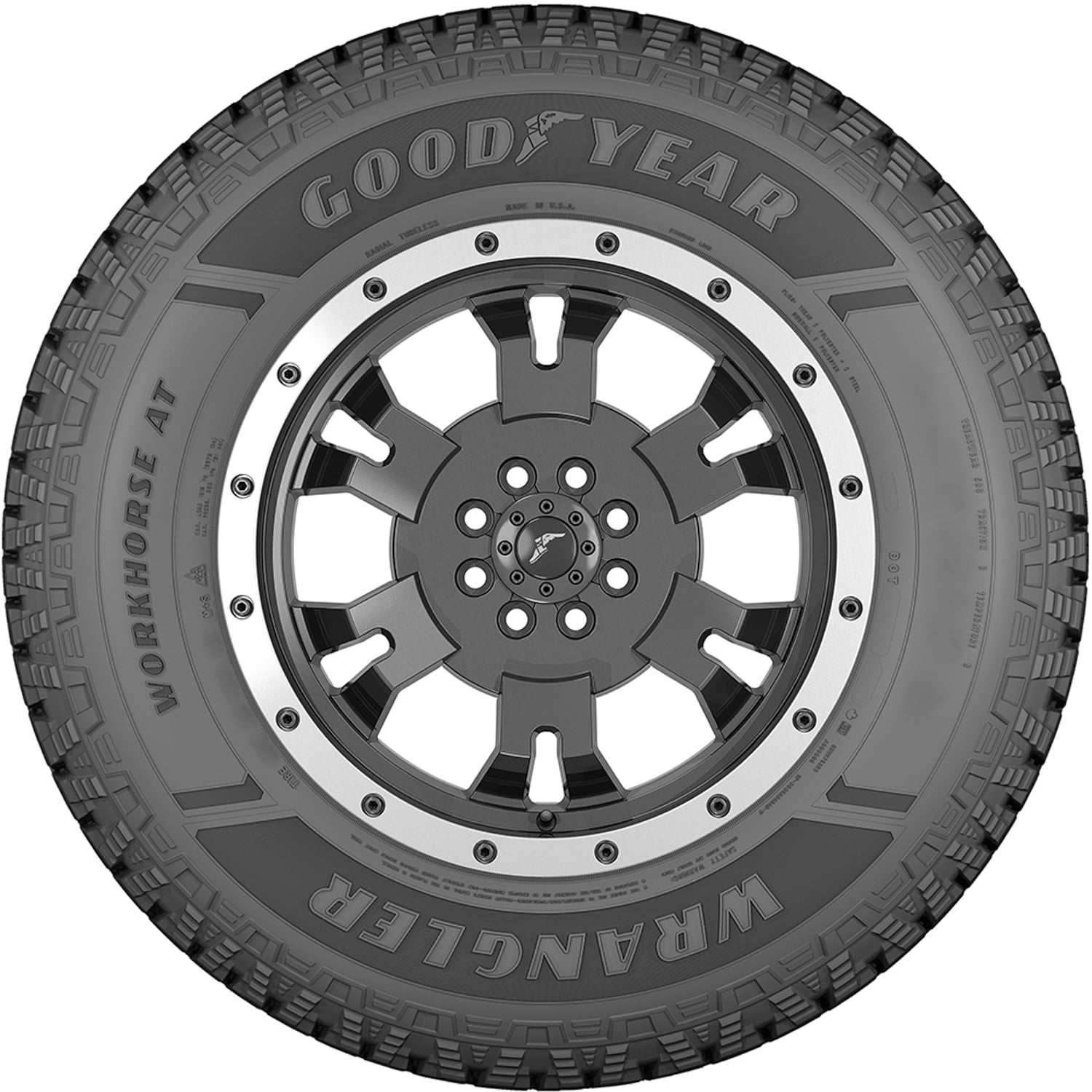 Goodyear Wrangler Workhorse AT P285/45R22 114H XL OVERVIEW An all-terrain tire with a 50,000-mile treadwear limited warranty, the Goodyear Wrangler Workhorse AT delivers strong traction on and off road, enabling drivers to access remote job sites.