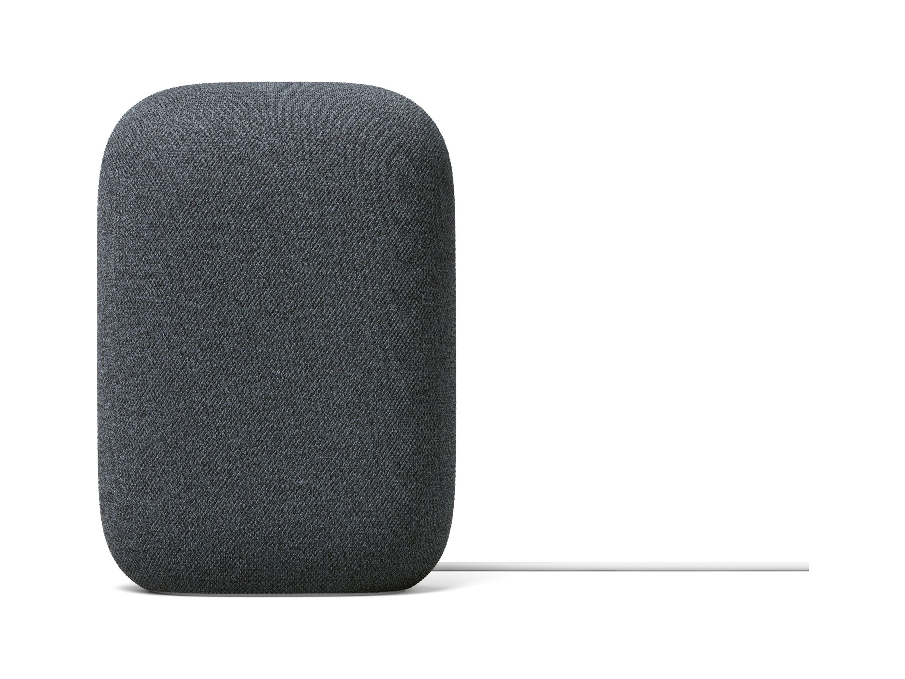 Meet the Nest Audio speaker. Hear music the way it should sound, with crisp vocals and powerful bass that fill the room. Just say, “Hey Google” to play your favorite songs or get help from Google Assistant. 1 Stream music, podcasts, and audiobooks from services you use most. And create a home audio system with your other Nest smart speakers, just like that. Nest Audio requires Wi-Fi, a nearby electrical outlet, a Google Account, and a compatible mobile device. Minimum OS requirements are available at g.co/home/req.