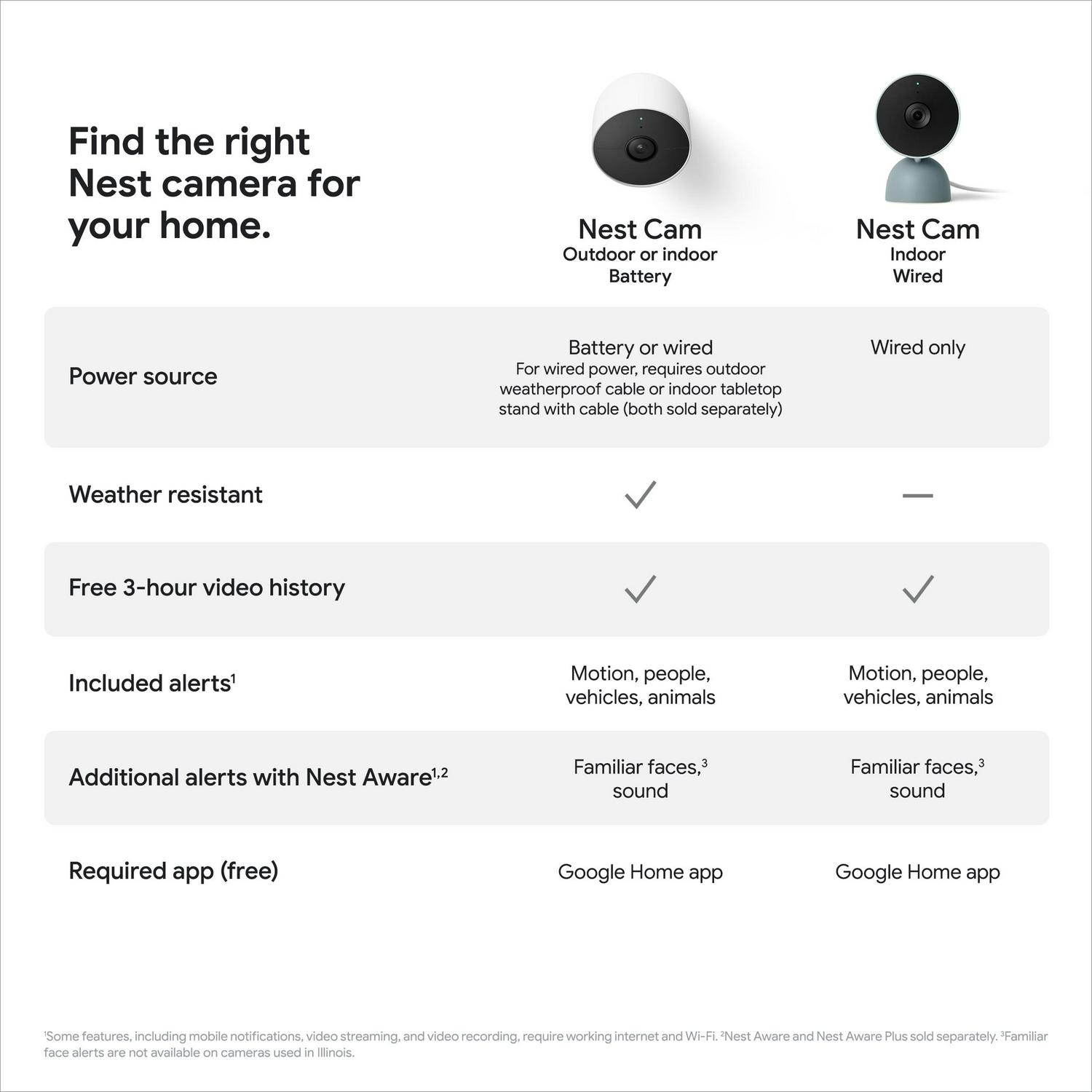 (1) Familiar face alerts require a Nest Aware subscription. Not available in Nest Cams used in Illinois.
