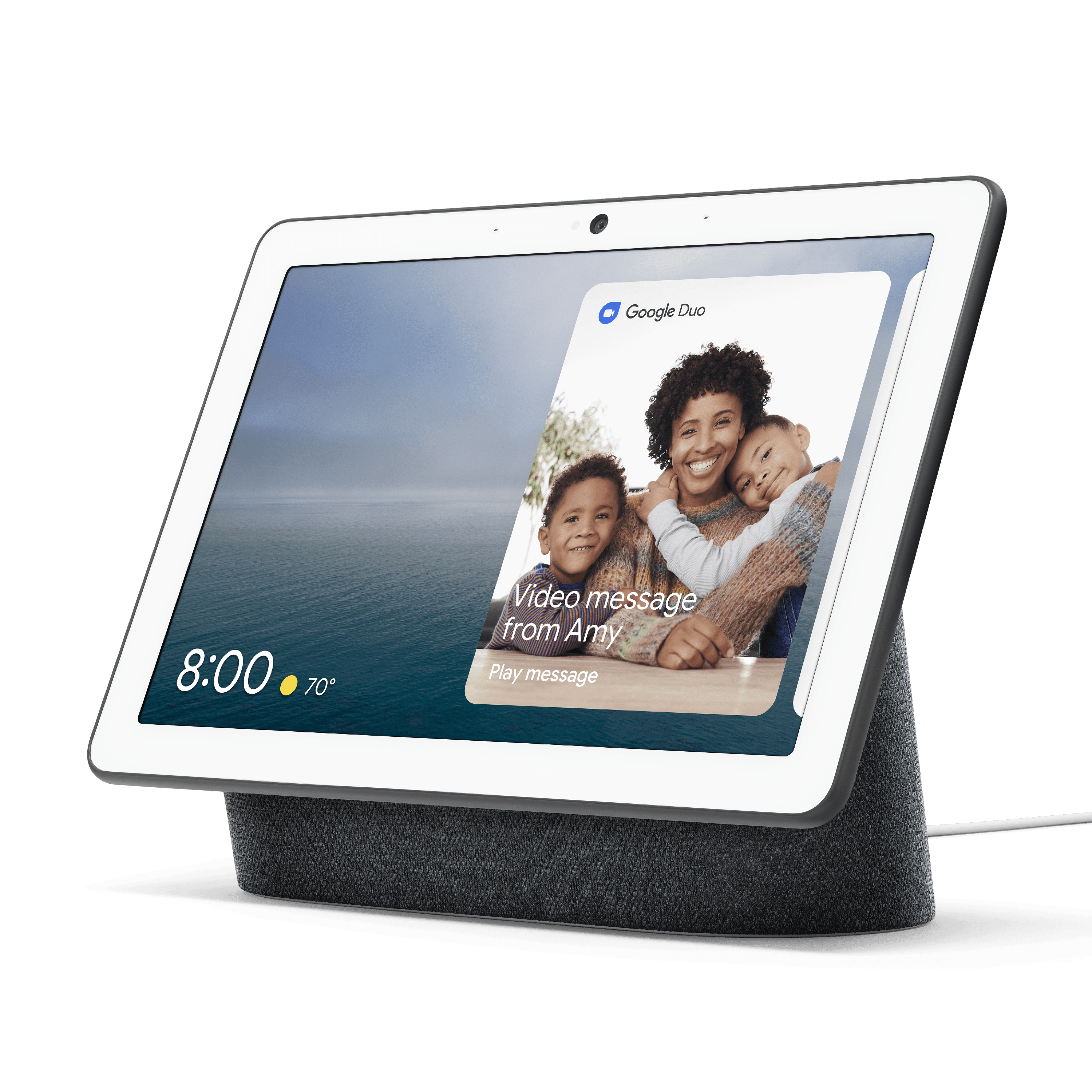 Keep your family connected. Whether you’re across the house or across the country, Nest Hub Max helps everyone stay in touch. You can make video calls or leave video messages with Duo. It’s hands-free, so just say, “Hey Google, call Grandma.” Google Photos automatically shows off your latest and greatest shots so family is never too far away. Your home looks out for you And vice versa. Look out for home when you’re away with the built-in Nest Cam. Check in for a live view. Get alerts if motion is detected. With a Nest Aware subscription, you’ll get continuous video recording and familiar face alerts. Make your smart home even smarter. Nest Hub Max works with thousands of smart home devices, like lights, TVs, and locks. And you can easily control them all from one place. You can also control compatible TVs, speakers, and game consoles from Nest Hub Max with your voice or from one dashboard. Turn them on and off, control the volume, play, pause, and search. So many ways to stay entertained. Everything looks and sounds great on the 10-inch HD screen and stereo speakers. Enjoy videos on YouTube. Watch live news, sports, and TV shows with a YouTube TV subscription. Stream from your apps with Chromecast built in. And listen to music with YouTube Music, Spotify, Pandora, and more. Hands-free help from the Google Assistant. Nest Hub Max helps your busy family stay on track. Everyone can see their own reminders, calendars, commute, and more. Leave each other video messages. Share to-dos and quick reminders. See answers from Google. Watch how-to videos on YouTube. And get the info you need, right when you need it. Add a Nest Aware subscription. Starting at $6 a month for all your Nest cameras, speakers, and displays. Nest Aware gives you more video history and alerts that matter. To make calls, Google Duo accounts required for you and call recipient. Familiar face alerts are not available on cameras used in Illinois. Night Vision not supported. Personalized results require additional enrollment and setup.Package delivery alerts require a Nest Aware subscription