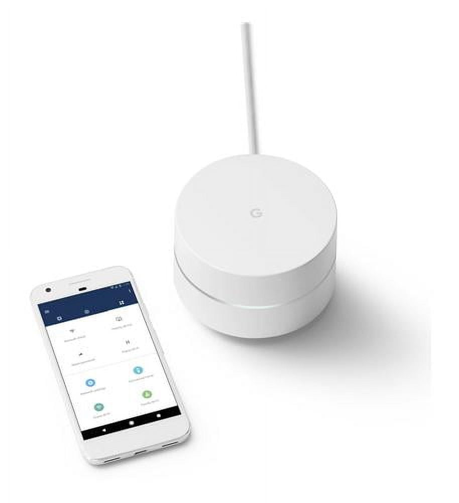 Features: AC technology with transfer rates up to 1200mbps Easy to setup with Google Wifi iOS or Android app Parental control Up to 1.500 sq. ft. of coverage Enjoy a consistent connection to the web with this Google Wi-Fi setup The single access point is ideal for use in smaller homes of less than 1,500 square feet, giving you the ability to connect your tablets, laptops or phones This Google Wi-Fi system provides a reliable signal that can be shared by multiple devices at once. Specification: Beamforming: Yes App Name: Google Wifi companion Bluetooth Enabled: Yes Product Length: 4.17 inches Gigabit Ethernet Speed: Yes Number Of Connected Devices: 0 Firewall Type: None Wireless Standard: AC Manufacturer’s Warranty – Parts:1 year Parental Controls: Yes Conference Enabled: No Product Weight: 0.75 pounds Color: White Transport Protocol: Yes Product Height: 2.7 inches Wired Backhaul: Yes Number of Antennas: 0 Wi-Fi Range: Small home or apartment ENERGY STAR Certified: No Port Type(s):RJ-45 Security Features: WPA2-PSK Automatic security updates; Infineon SLB 9615; Trusted Platform Module Wired Speed: 1000 megabits per second Auto Speed Sensing:Yes Encryption Type: WPA2 Frequency Band: 2.4 GHz Integrated Modem: Yes Product Width: 4.17 inches Wi-Fi Mesh System: Yes Color Category: White Model Number: NLS-1304-25 1-PACK System Requirements: Android device (4.0 or higher) or iOS device (iOS 8 or higher), Google Account Number of Wi-Fi Satellites Supported: 0 Wi-Fi Speed: 1200 megabits per second Ethernet Standard: 10/100/1000 Product Name: Google Wifi AC1200 Dual-Band Mesh Wi-Fi Router Auto Detecting: Yes App Compatible: Yes Number Of LAN Ports: 2 Manufacturer’s Warranty – Labor: 1 year App-Controlled: Yes Ethernet Switch: Yes Data Encryption: Yes Band Technology: Dual Auto Connect: Yes Number Of WAN Ports: 2 Wireless: Yes Number of Wi-Fi Satellites Included: 1