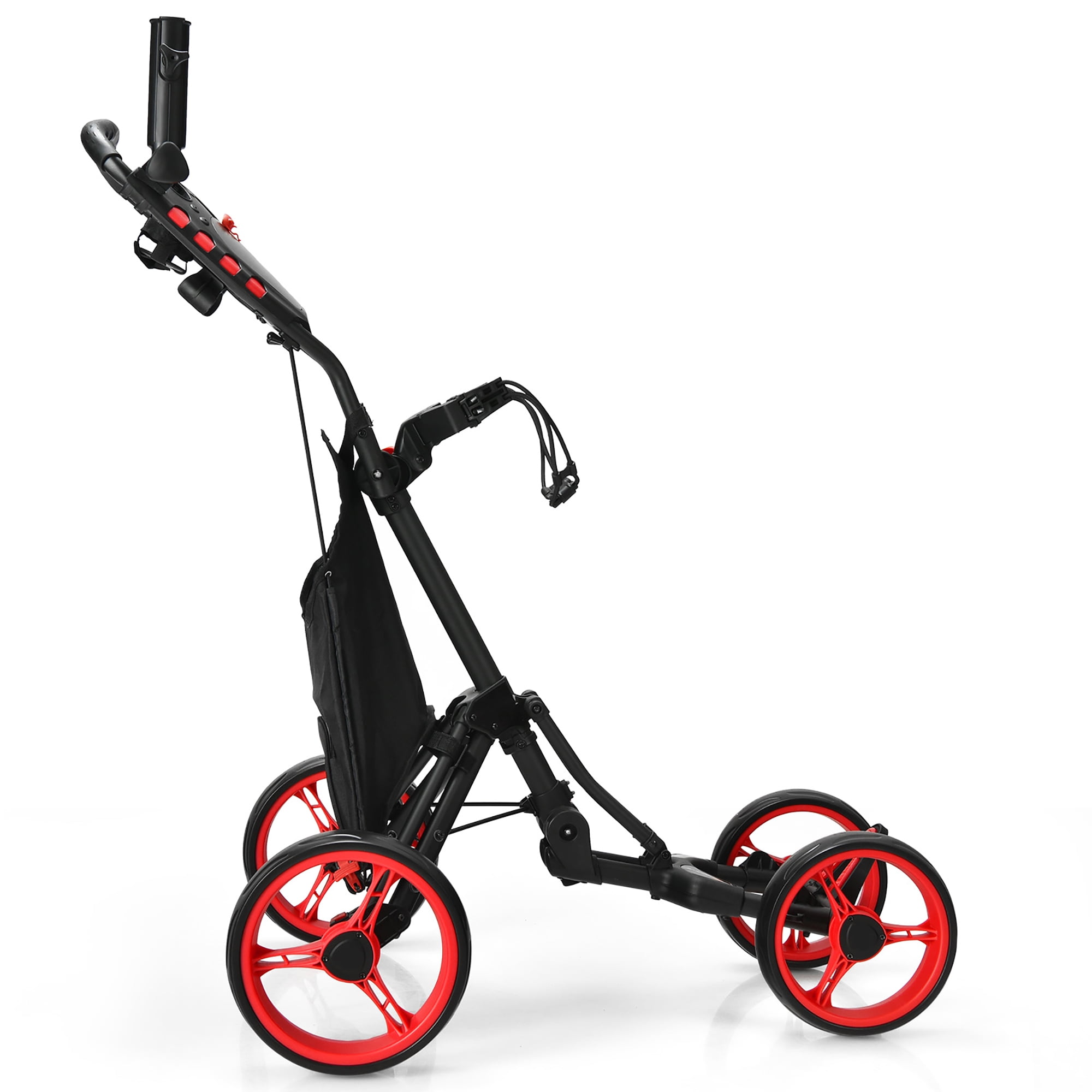 Goplus Folding 4 Wheels Golf Push Cart W/Bag Scoreboard Adjustable Handle Red
