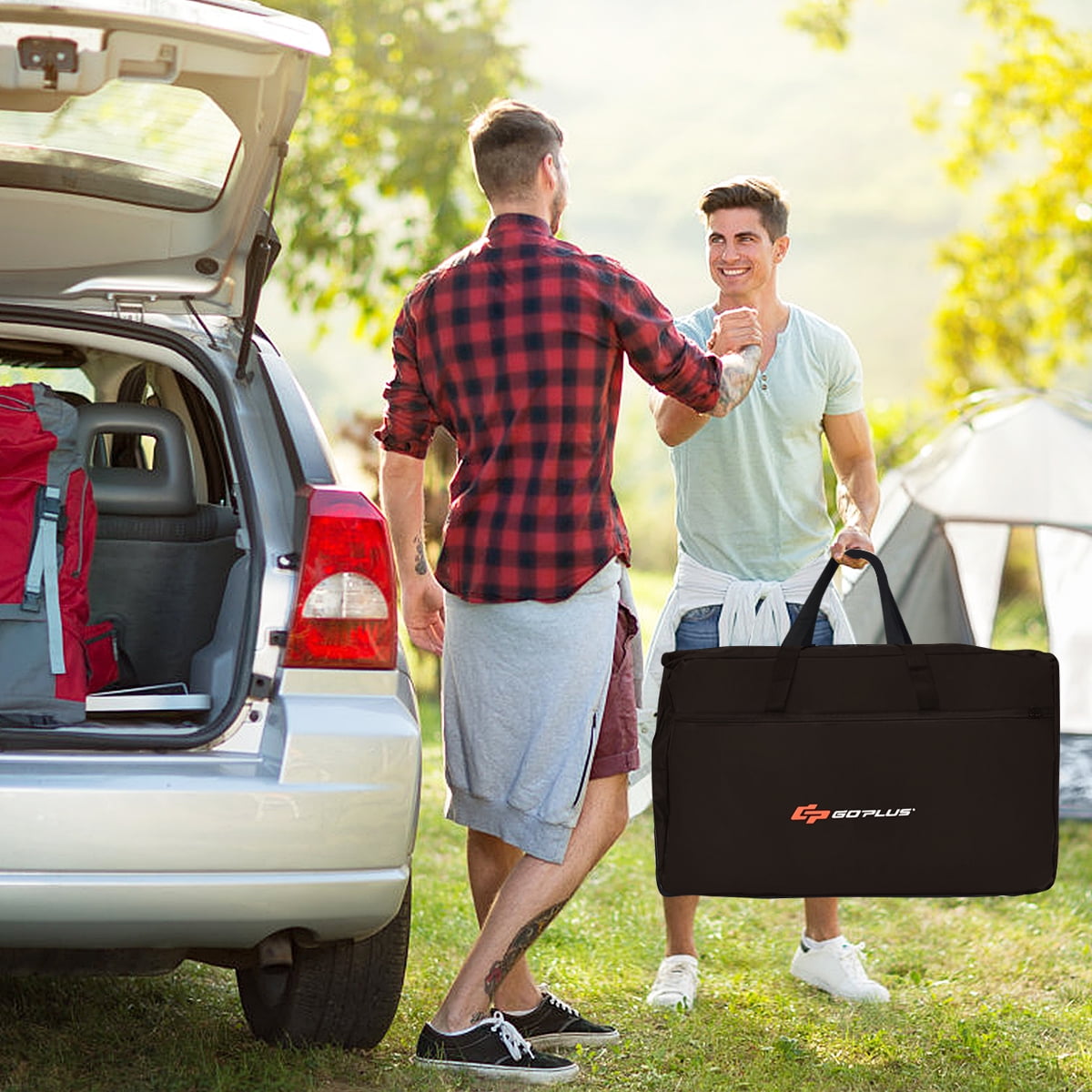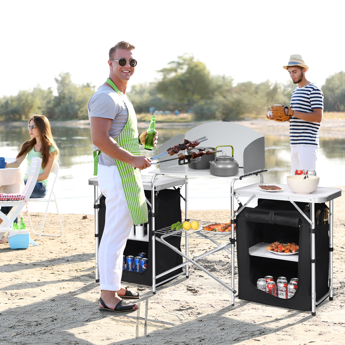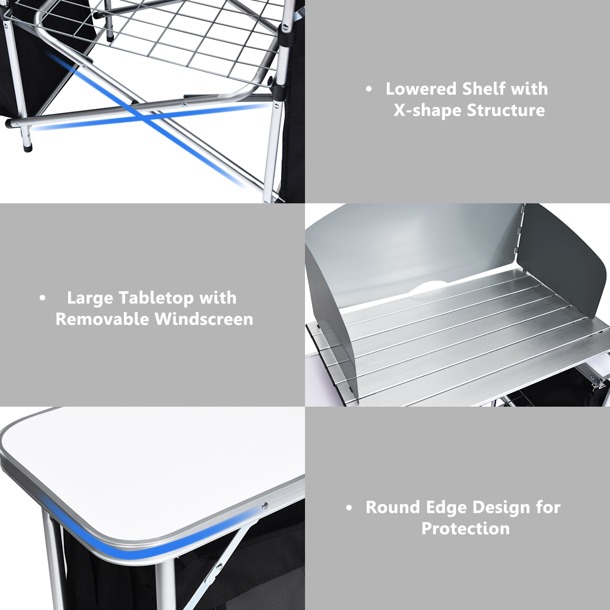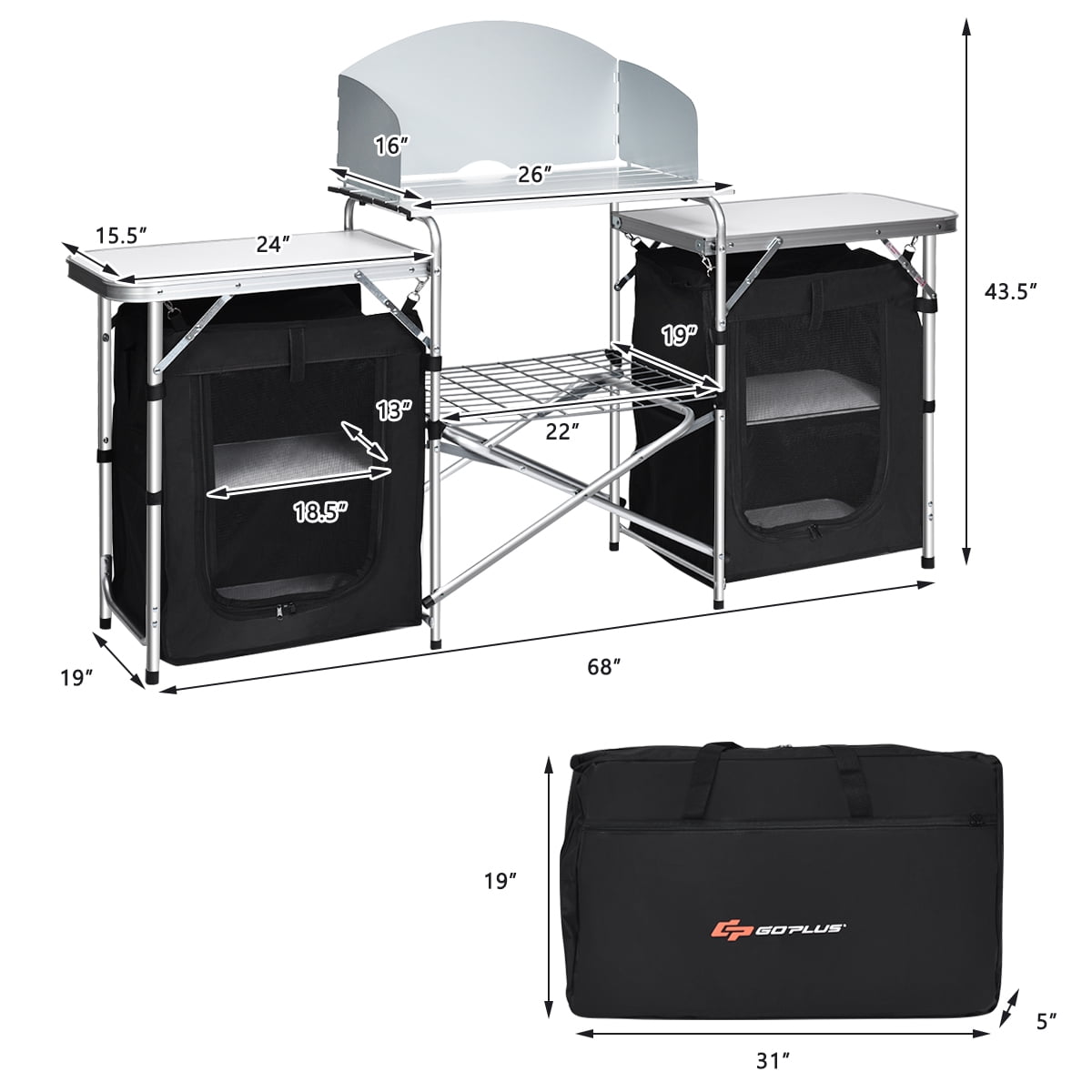 Goplus Folding Portable Aluminum Camping Grill Table w/ Storage Organizer Windscreen Black