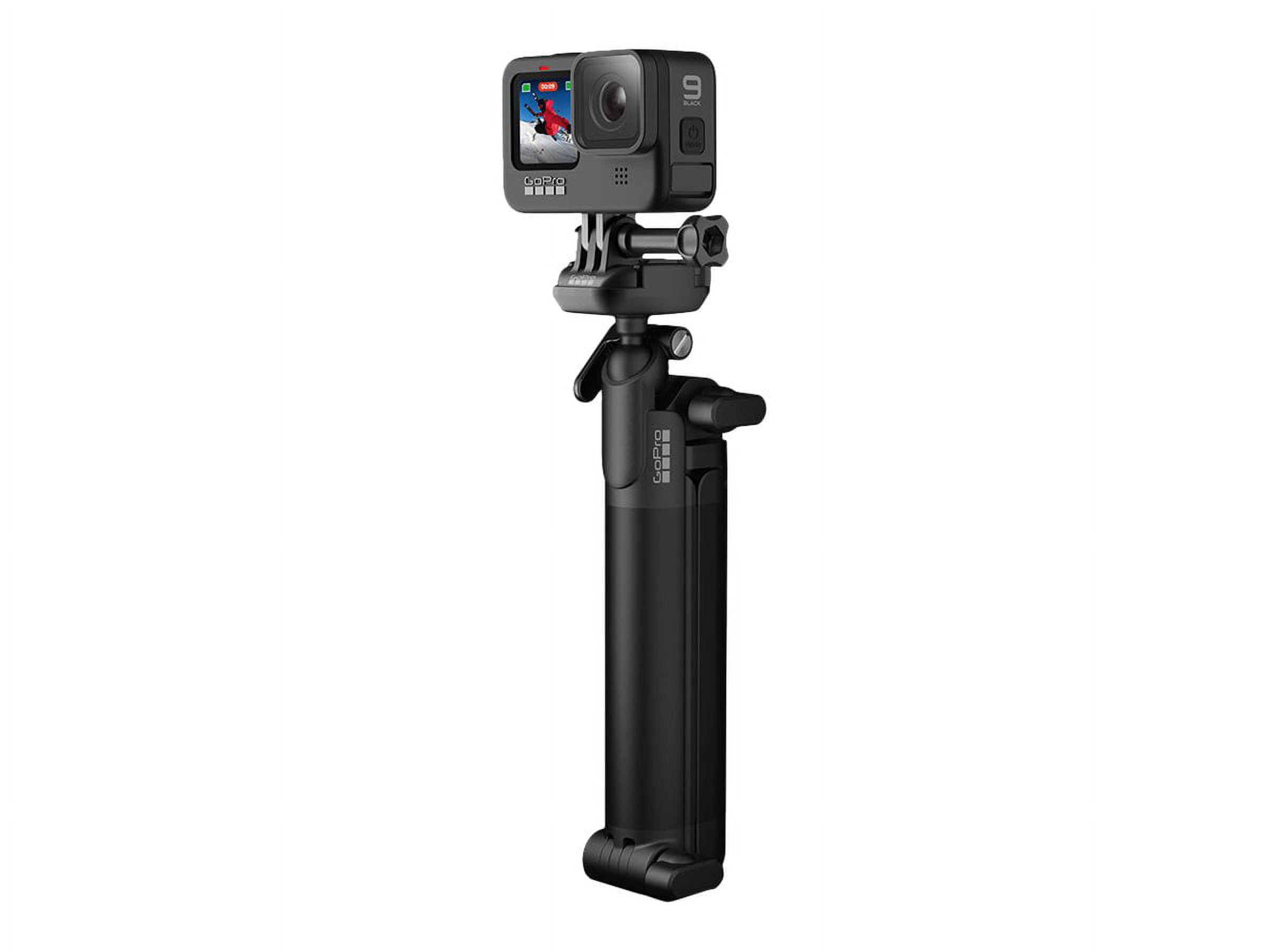 Can be used three main ways: as a camera grip, extension arm or tripod. Configurable for a wide range of uses, from capturing POV footage and selfies to follow-cam, static tripod shots and more Folding arm makes it easy to capture selfies without the mount appearing in the shot Handle can be detached from the arm and used as a camera grip. Removable tripod conveniently stores inside the handle Measures 20in (50.8cm) when fully extended and collapses to 7.5in (19cm)
