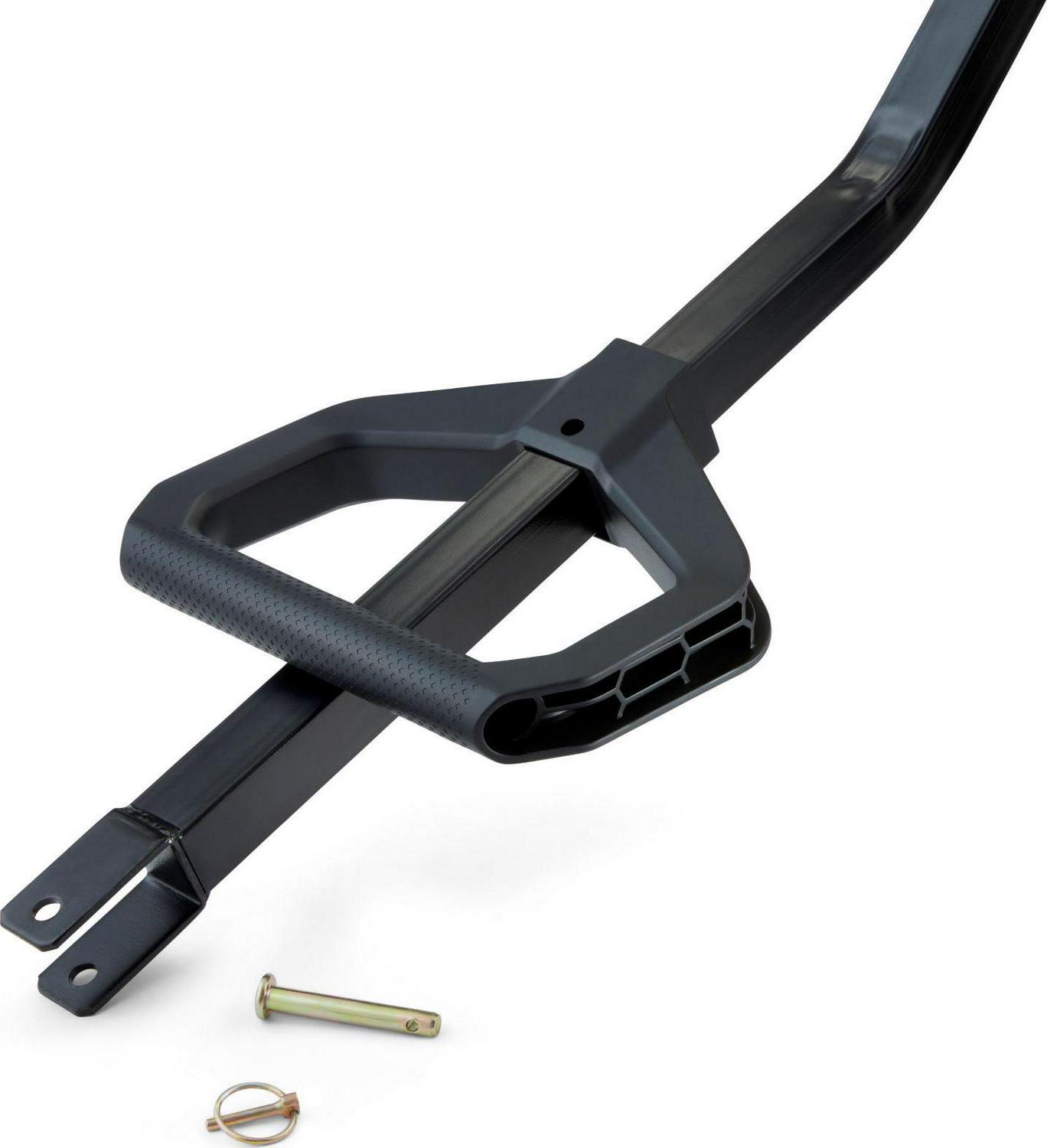 – 2-in-1 convertible handle can be pulled by hand or towed behind a tractor or ATV
