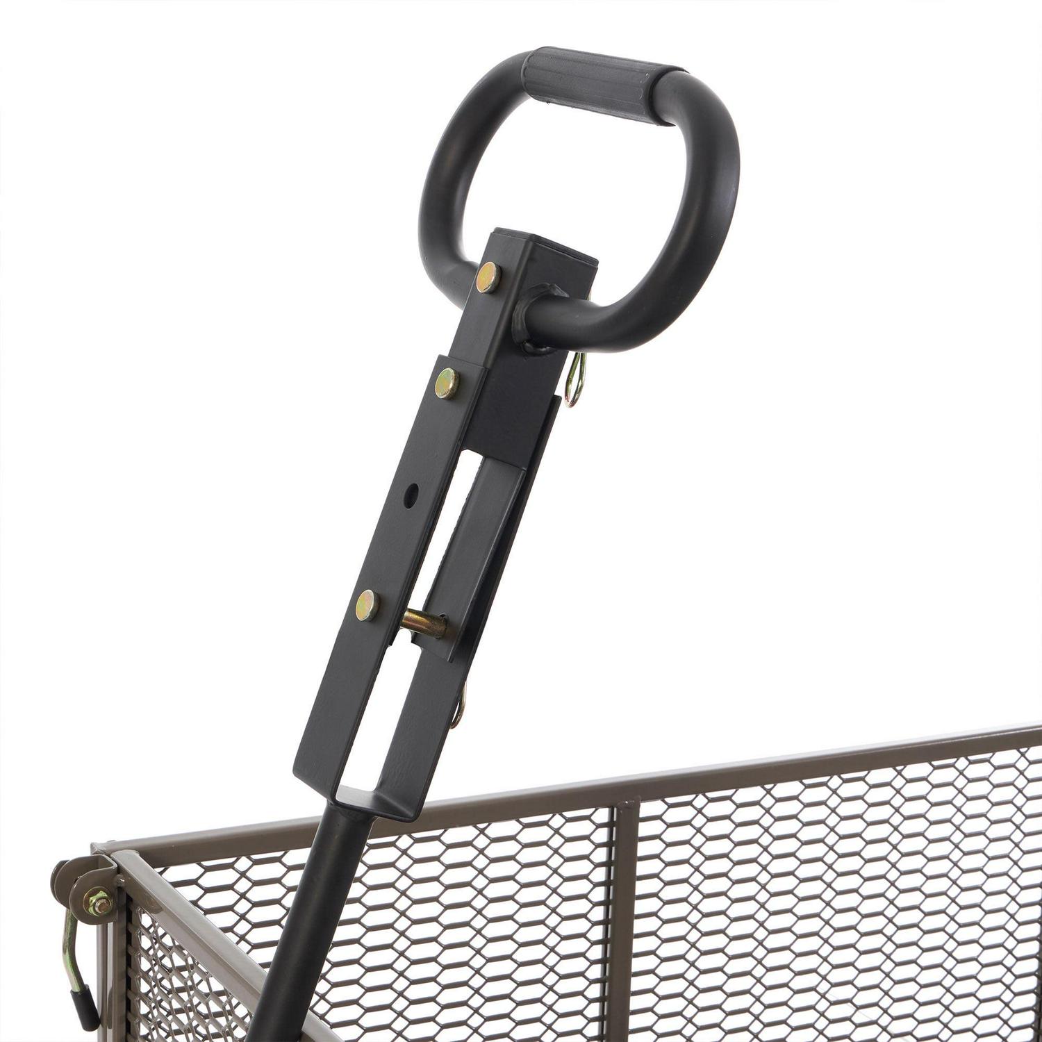 – Pulling handle provides comfortable and convenient manual hauling; Handle can also convert into a hitch for easy towing