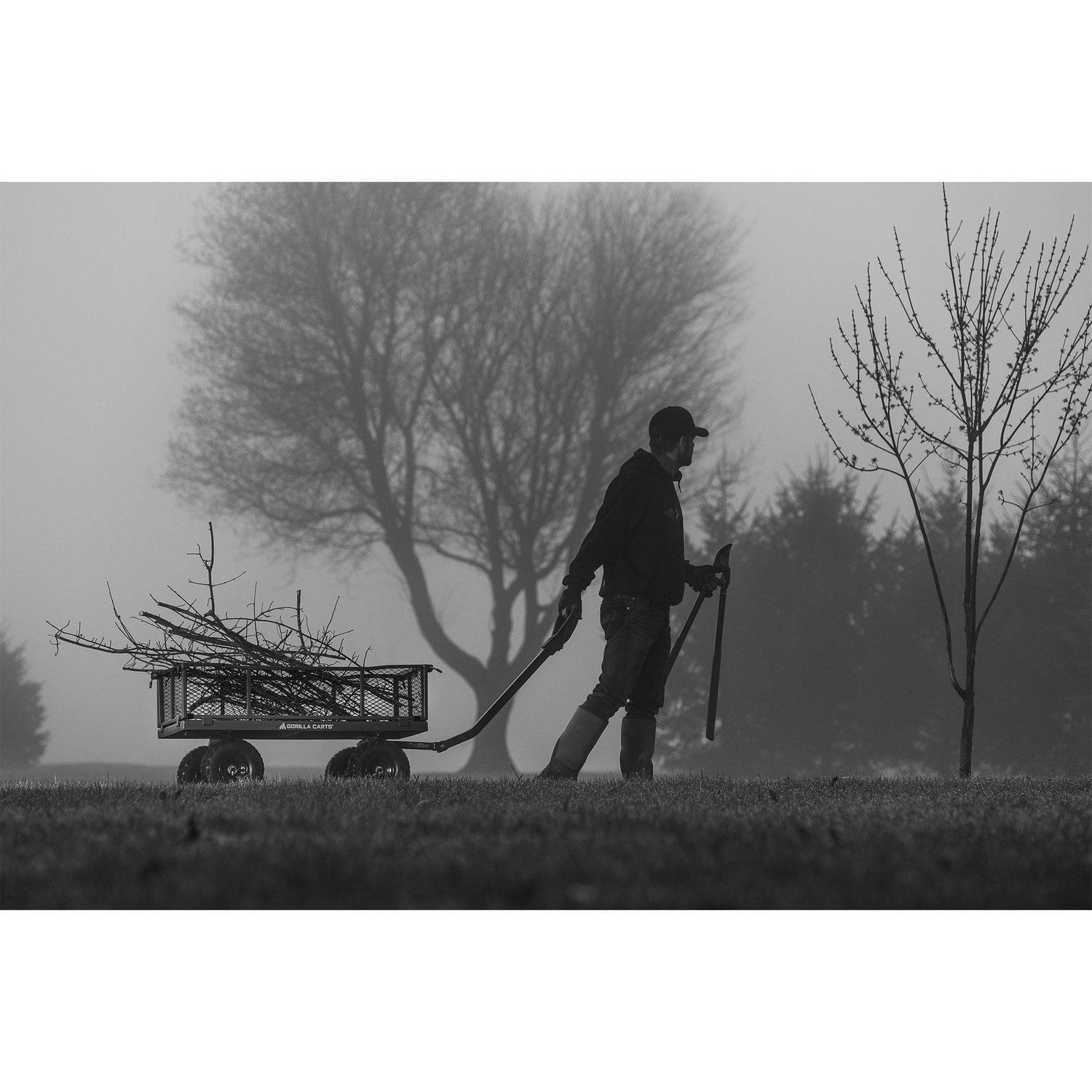 Whether it’s hauling chopped wood or fertilizer, carry them all in the Gorilla Carts 4-Cubic Feet Steel Utility Wagon. This strong cart with wheels can carry up to 900 pounds worth of items for the maximum hauling experience. This versatile, heavy duty wagon features a long handle that provides comfort and convenience when going from place to place and zero-turn steering for easy maneuverability. Plus, you can easily convert the yard wagon handle to a hitch for towing behind a mower or ATV if needed. With removable sides, you can enjoy customizing the gorilla cart wagon to your needs and have even more room for bigger loads. With a weight capacity of 900 pounds, this wagon cart is suitable for rugged use around the lawn, garden, and more. The rolling cart wagon includes durable, 10-inch pneumatic wheels that make it easy to maneuver across any terrain, great for doing work around the farm or as a camping wagon to haul all your gear across the camping grounds. You can also use this as a camping cart, beach wagon, all-terrain wagon, garden cart on wheels, or even a cart for groceries. Constructed from heavy-duty powder-coated steel, the pull cart features the utmost durability for long-lasting use. Measuring 44.8 inches long, 39.5 inches wide, and 23 inches tall, you can haul all kinds of yard essentials, tools, firewood, and more in this metal wagon. Easily store the heavy duty cart in your garage or another storage area when you are done with a hard day’s work. All you need to do is a little pulling and the Gorilla Carts Steel Utility Cart will do the rest.