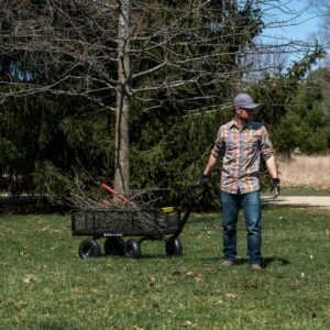 – Garden cart boasts a 900-pound hauling capacity while weighing just 46 pounds