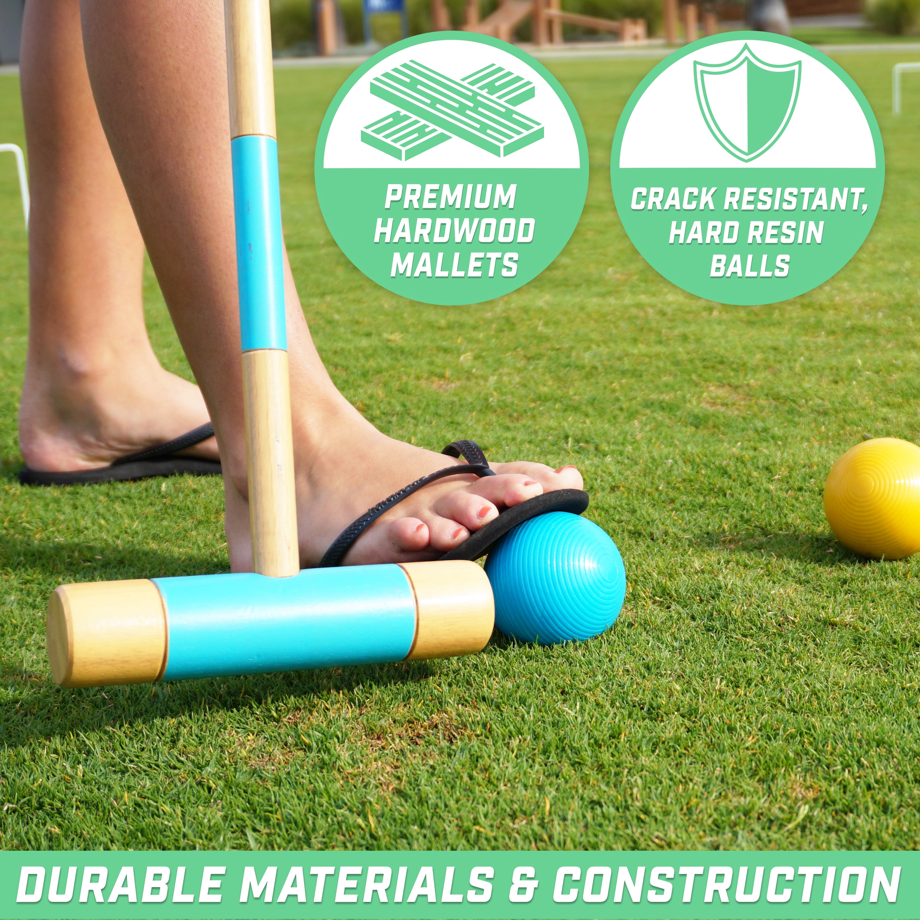 GoSports Deluxe Croquet Set – Full Size for Adults & Kids, Includes 6 Croquet Premium Wood Mallets(35 In Long), 6 Balls, 9 Wickets