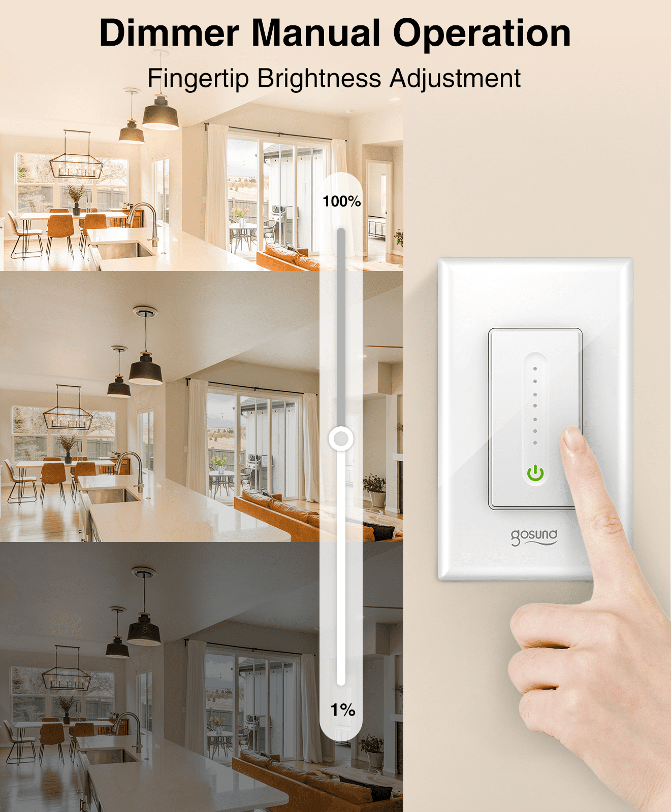 0% – 100% Dimming – The dimmer switch adjusts the desired brightness/speed via phone app, voice control, or manually via the LED touch panel. The brightness memory function is available for the last light setting when powered off. Supports up to 150W dimmable LED/UL or 400W incandescent bulbs and 100W ceiling fans. Note that the smart dimmer switch cannot be used with smart bulbs. Voice Control – The smart switch dimmer also works with Google Assistant. When your hands are full or enter a dark room, just say the commands turn on the light, enjoy the hand-free convenience, stay cozy in bed, and turn lights off with your voice. Remote Control & Scheduling – Remote control your dimmer smart switch from anywhere via App; Set schedules to turn on/off electrical appliances while you are home or away. You can also share the App with your family members to control the device Group & Scene Control – These smart light switches Create the lighting group you want, control them from any room, and expand it at any time; Meanwhile, you all can create various scenes for getting up, sleeping and so Note: UL Certified; Neutral Wire is needed; Step-by-step instructions will guide you through the wiring process. Standard size fits any standard multi-gang wall plate. single-pole use only (NOT 3-way); “2.4G” Wi-Fi only for the first time installation (NOT 5G)